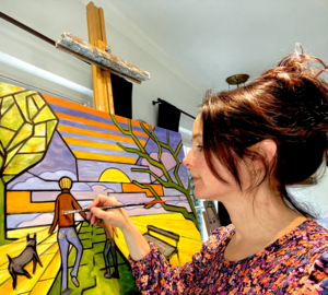 Liesbeth Werink (Slagharen, 1969) maakt vrolijke, kleurrijke, idyllische, verstilde schilderijen. Met haar schilderijen wil ze graag de schoonheid van mens en natuur overbrengen en daarbij een soort van “ideale droomwereld“ uitbeelden waarin geen narigheid bestaat en alles in harmonie is. Om even lekker bij weg te dromen en te ontsnappen aan de dagelijkse werkelijkheid. In het schilderproces experimenteert ze veel met kleur, vorm en compositie, net zolang totdat alles in balans is. Haar werk is daardoor altijd gelaagd en goed doordacht. Als autodidact en later ook door allerlei cursussen te volgen, heeft zij een hele ontwikkeling doorgemaakt. Dit heeft geresulteerd in een typisch eigen schilderstijl. In 2019 behaalde zij het eindcertificaat aan de Vrije Academie voor Kunsten in Nunspeet.