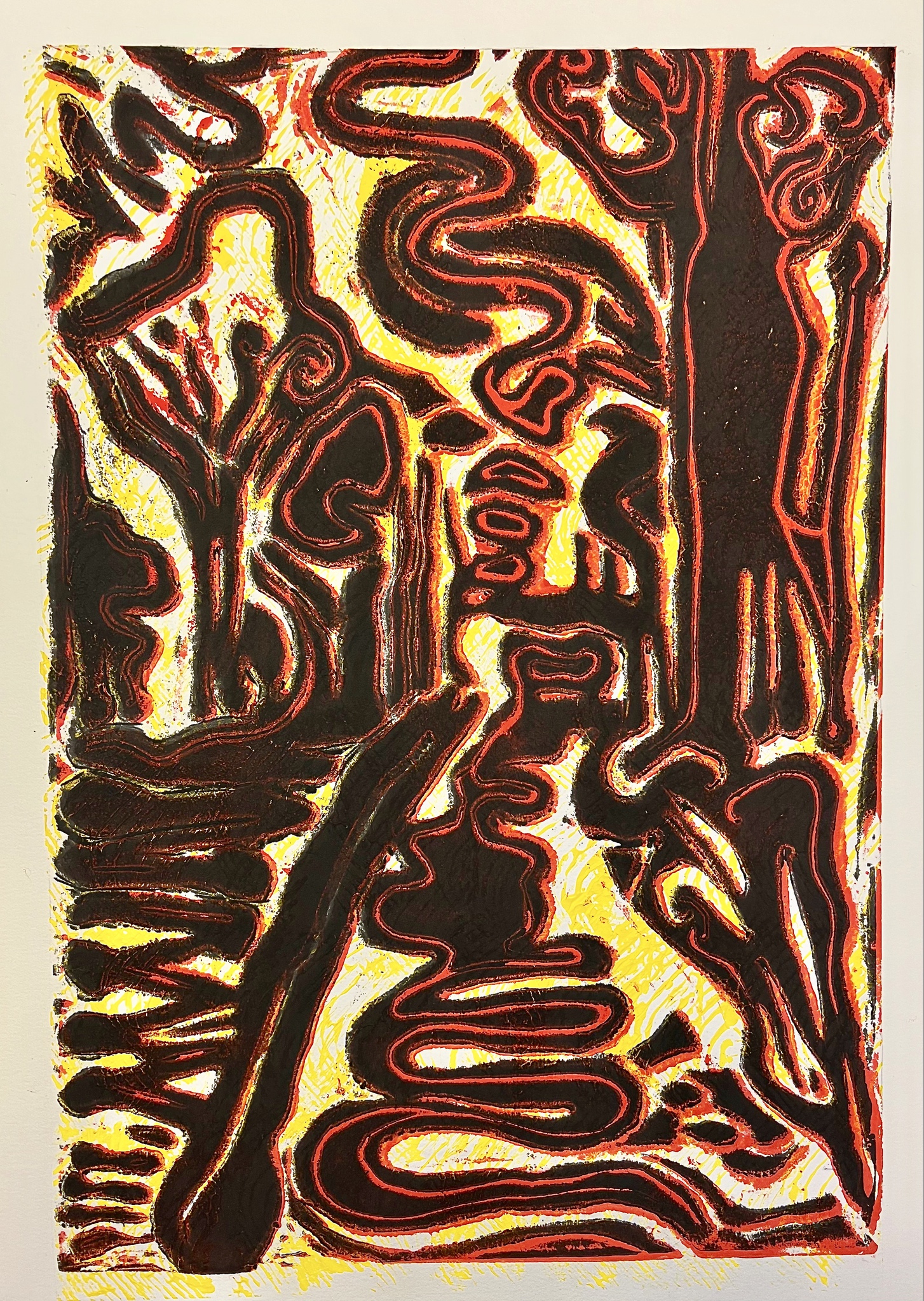 Inspired by "A walk in the Schoorlse Duinen" In red, black and yellow (with wooden frame)
