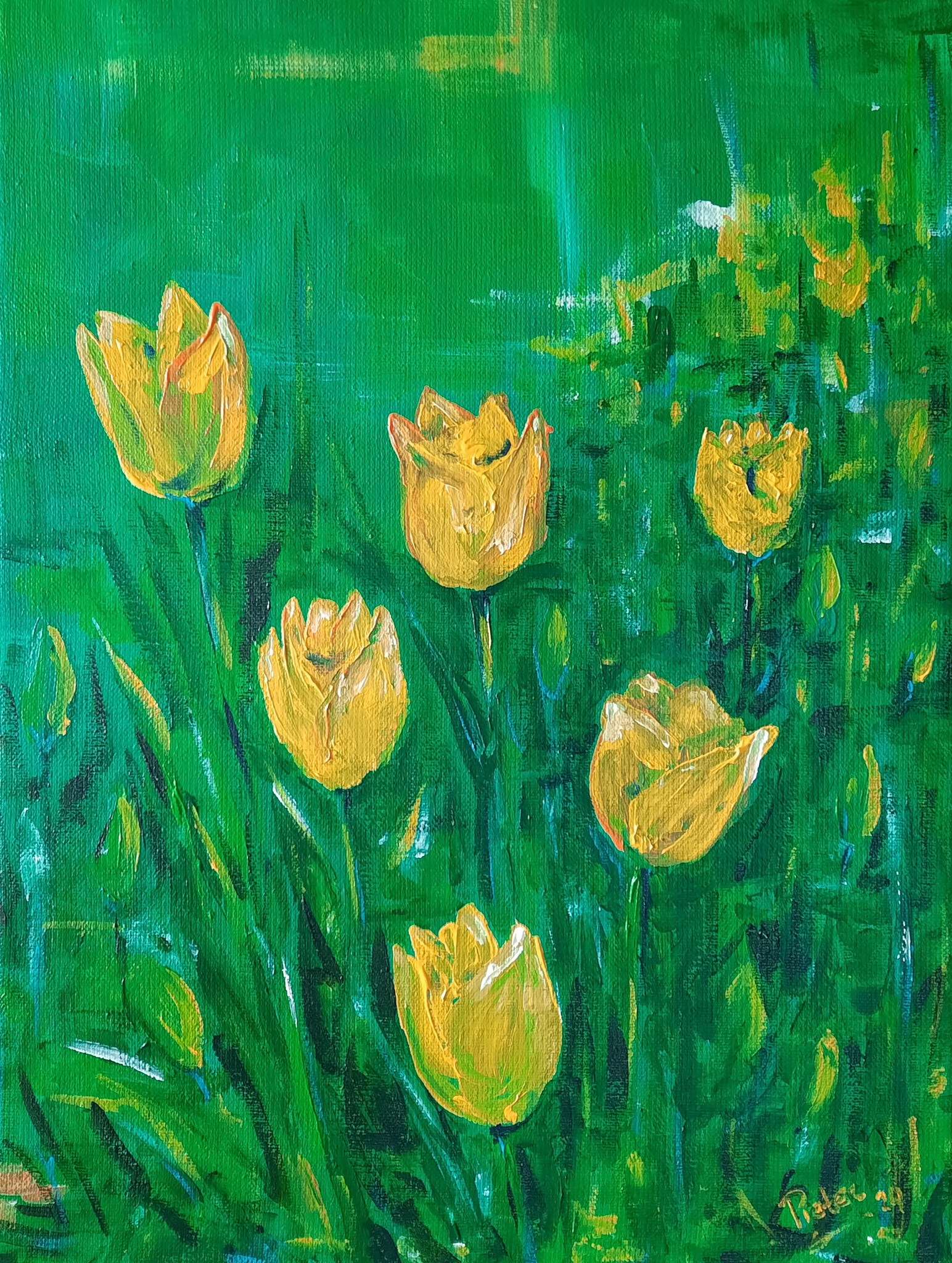 Tulpen in het veld Acryl op doek 30x40 cm 2024