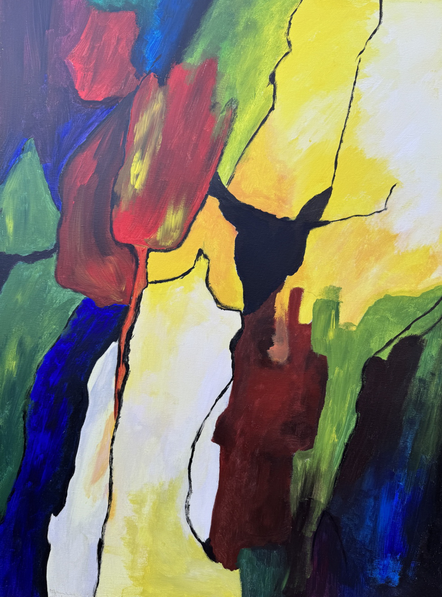 De kleuren gloeiden als een brandend vuur, kronkelden en duwden tegen elkaar zoals de wilde wind die door een verlaten vallei raasde. En ergens tussen die wirwar van lijnen—verstopt, maar onmiskenbaar aanwezig—zat de kop van een stier.