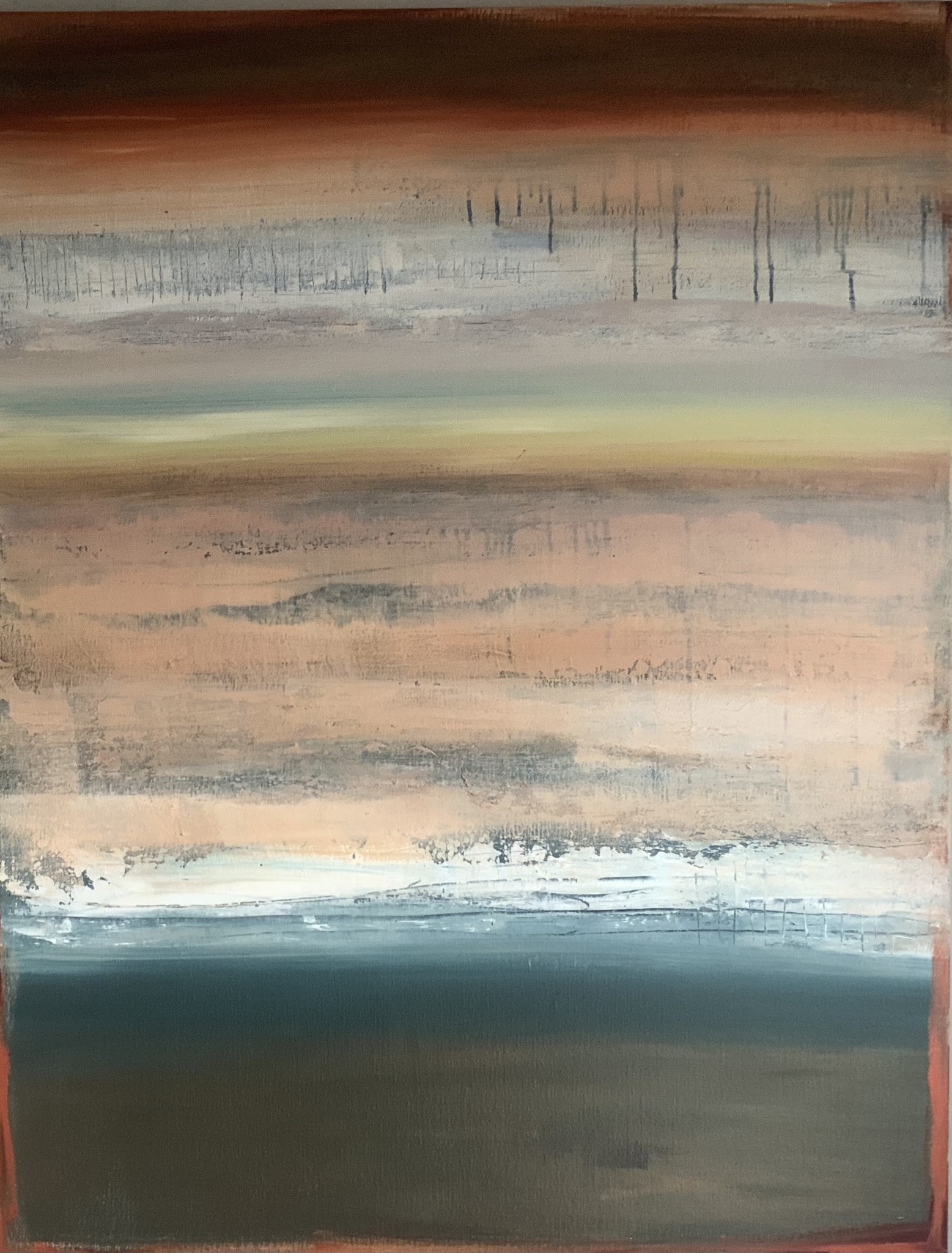 ik zie een abstract schilderij maar ik kan ook de natuur erin zien, de ondergaande zon, het water, de zandvlakte, maar ......it's not what you look at that matters, it's what YOU see (mijn quote)