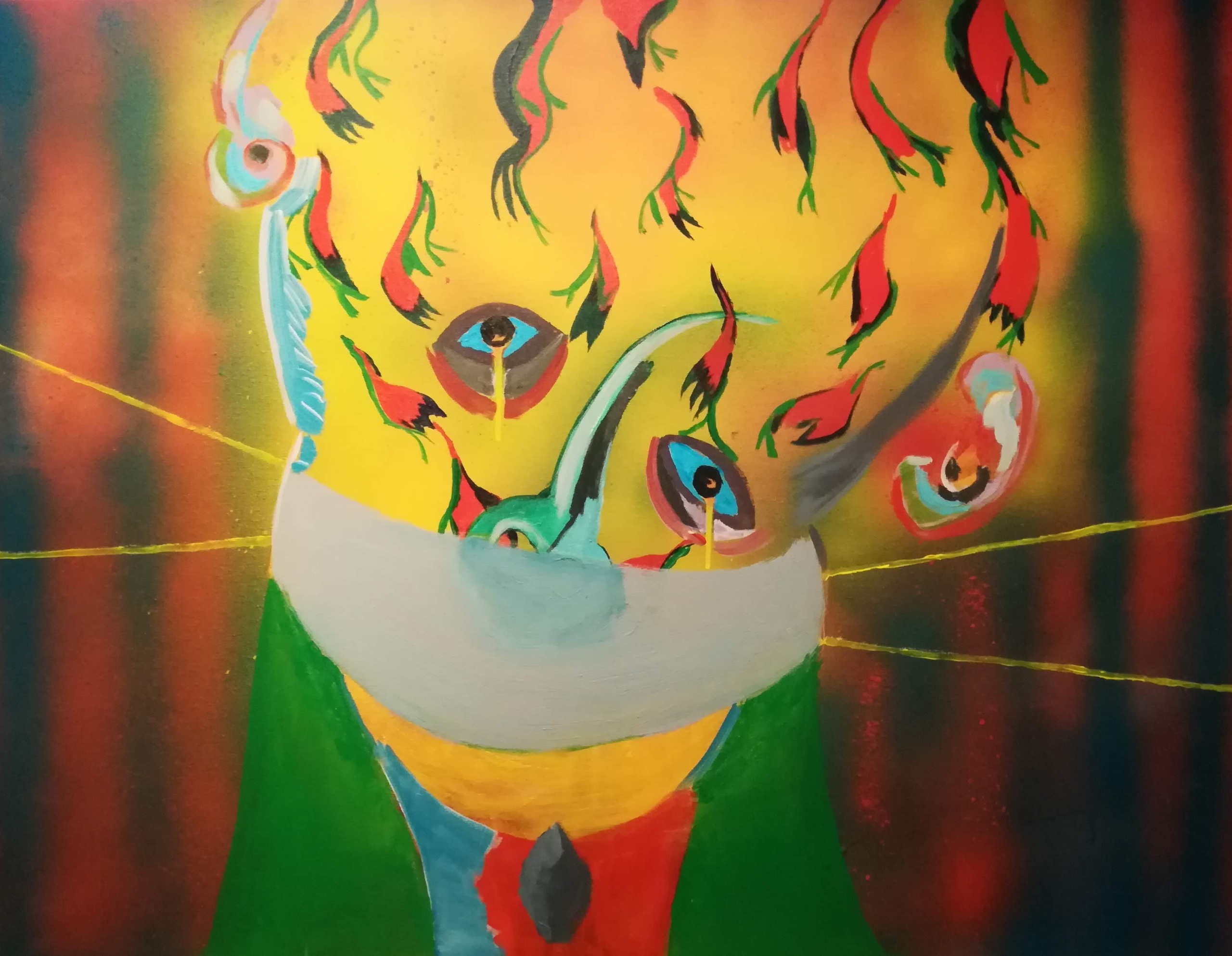 De huidige Edu schildert met waterbased olieverf op canvas, kenmerkend zijn de felle kleuren en de verstilde beweging.