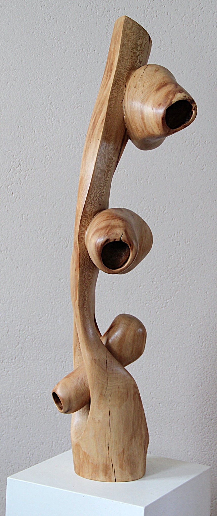 Hout Sculptuur Beeld Beeldhouwen Beeldhouwwerk Kersen Kersenhout Houtwerk Snijwerk Houtsnijden Houthakken Gladhout Houtolie Binnensculptuur Versiering Verfraaien Interieur Interieurobject Galerie Kunstmarkt