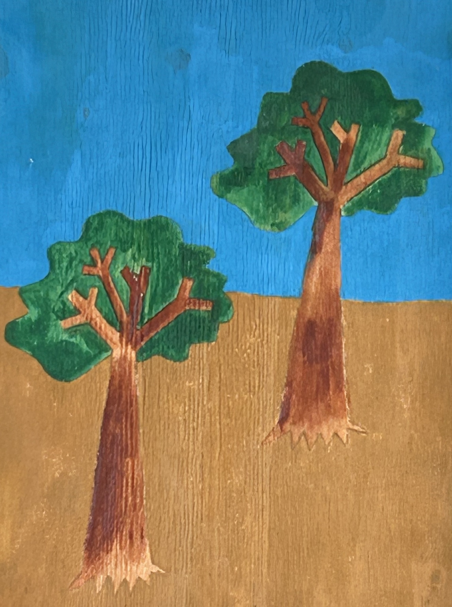 Bomen Hout Schilderij Acryl Blauw Groen