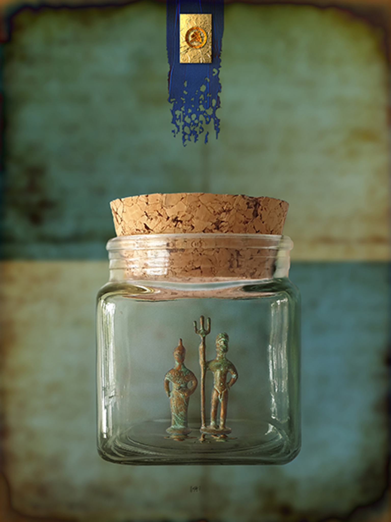 Huis Surreeel Oker Groen Glas Digitaal Grafiek Mythologie Koningspaar