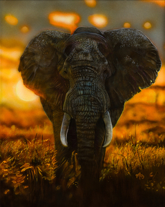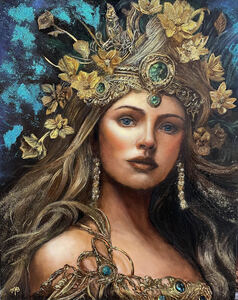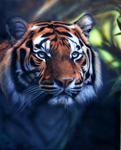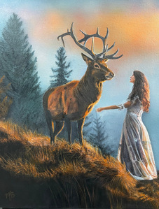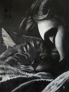 Het schilderij is een prachtige weergave van twee Siamese kempvissen (Betta splendens) die elkaar gracieus tegemoet zwemmen, als in een dans. De ene vis is fel rood-oranje, alsof hij kleine vlammetjes draagt in het schemerlicht, terwijl de andere een serene blauwe kleur heeft die rust uitstraalt. De contrasterende kleuren zorgen voor een visuele harmonie en roepen een gevoel op van balans en eenheid tussen de twee. De sfeer van liefde en gezelschap is voelbaar aanwezig. De achtergrond is diep, bijna fluweelachtig zwart, waardoor de levendigheid van de vissen nog sterker naar voren komt. Het lijkt alsof de rest van de wereld even stilstaat. Deze duisternis vormt een krachtig contrast met de heldere, levendige kleuren van de vissen. Het voelt alsof ze zweven in een eeuwig moment, onaangetast door de buitenwereld. Het schilderij is gemaakt met acrylverf, waarbij op bepaalde plekken reliëf is aangebracht om een 3D-effect te creëren. Deze betoverende scène is geplaatst in een zwarte houten lijst. De lijst is eenvoudig en leidt de aandacht niet af van het centrale onderwerp, maar versterkt juist het kunstwerk. Dit schilderij is een symbolische weergave van liefde en verbondenheid. Hoewel je zou denken dat vissen niet kunnen zingen, doet het me denken aan een citaat van Arne Garborg:,