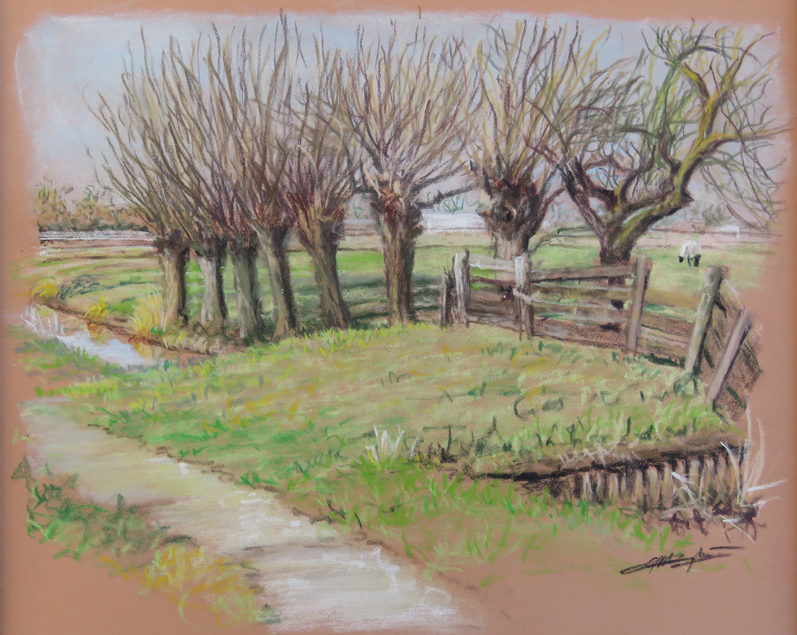 Bomen Lente Hek Sloot Trees Spring Knotwilgen Fence Dike Willows Pollard Ditch Dijkje