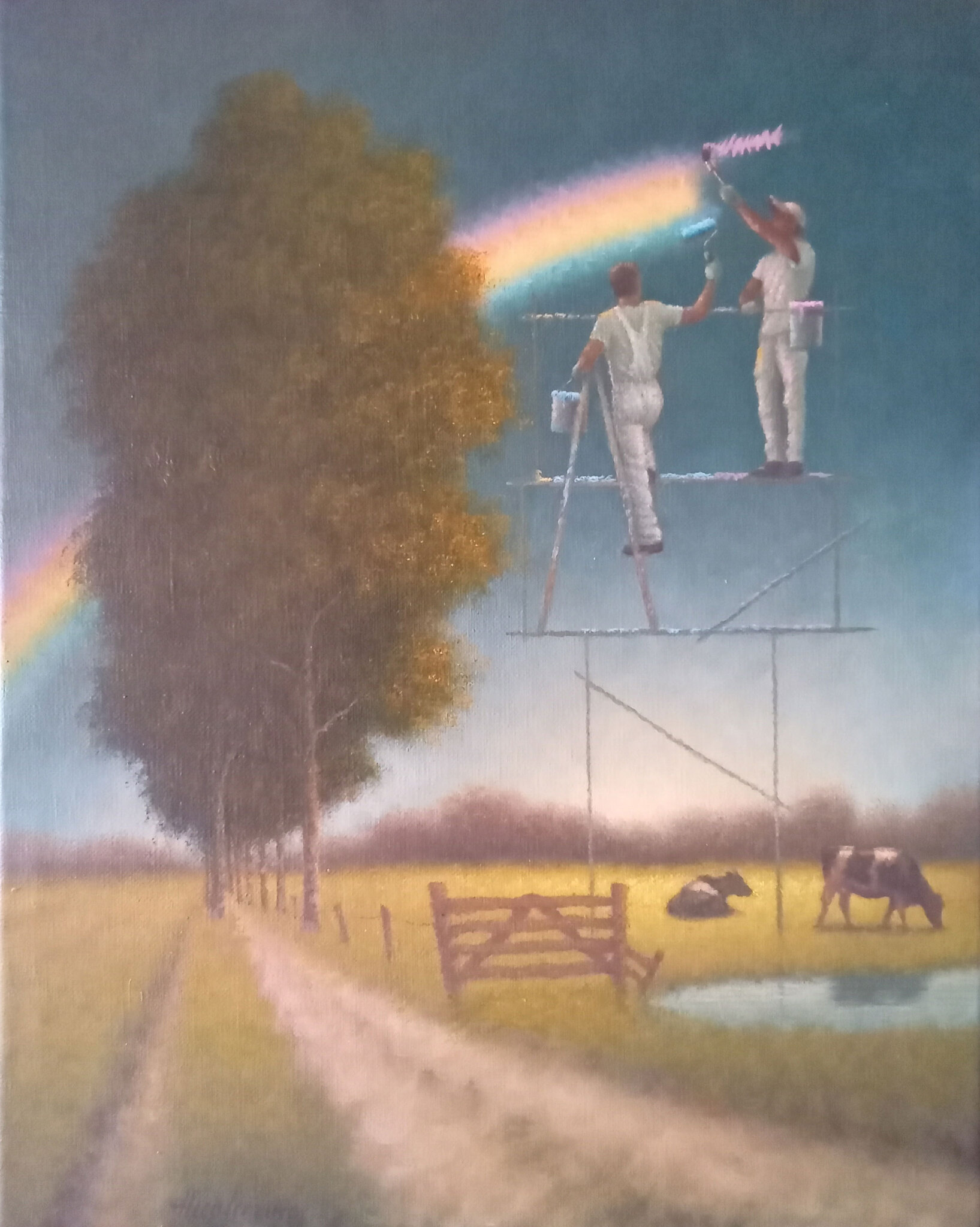 Na het voltooien van een grafische opleiding en jarenlange zelfstudie is Theo Leering sinds enige tijd full time werkzaam als beeldend kunstenaar. Zijn stijl valt moeilijk in één hokje te plaatsen maar is altijd figuratief. Het beweegt tussen realistisch en absurdistisch en is vaak melancholisch van toon. Achter deze melancholie schuilt te allen tijde een sprankje hoop. De thema’s lopen sterk uiteen al speelt muziek in veel van zijn werk een belangrijke rol. In principe kan alles wat op zijn netvlies verschijnt, hoe klein of ogenschijnlijk nutteloos ook, dienen als idee voor een schilderij. In opdracht maakt Theo portretten en muurschilderingen. Daarnaast geeft hij een aantal dagdelen per week les in tekenen en schilderen.
