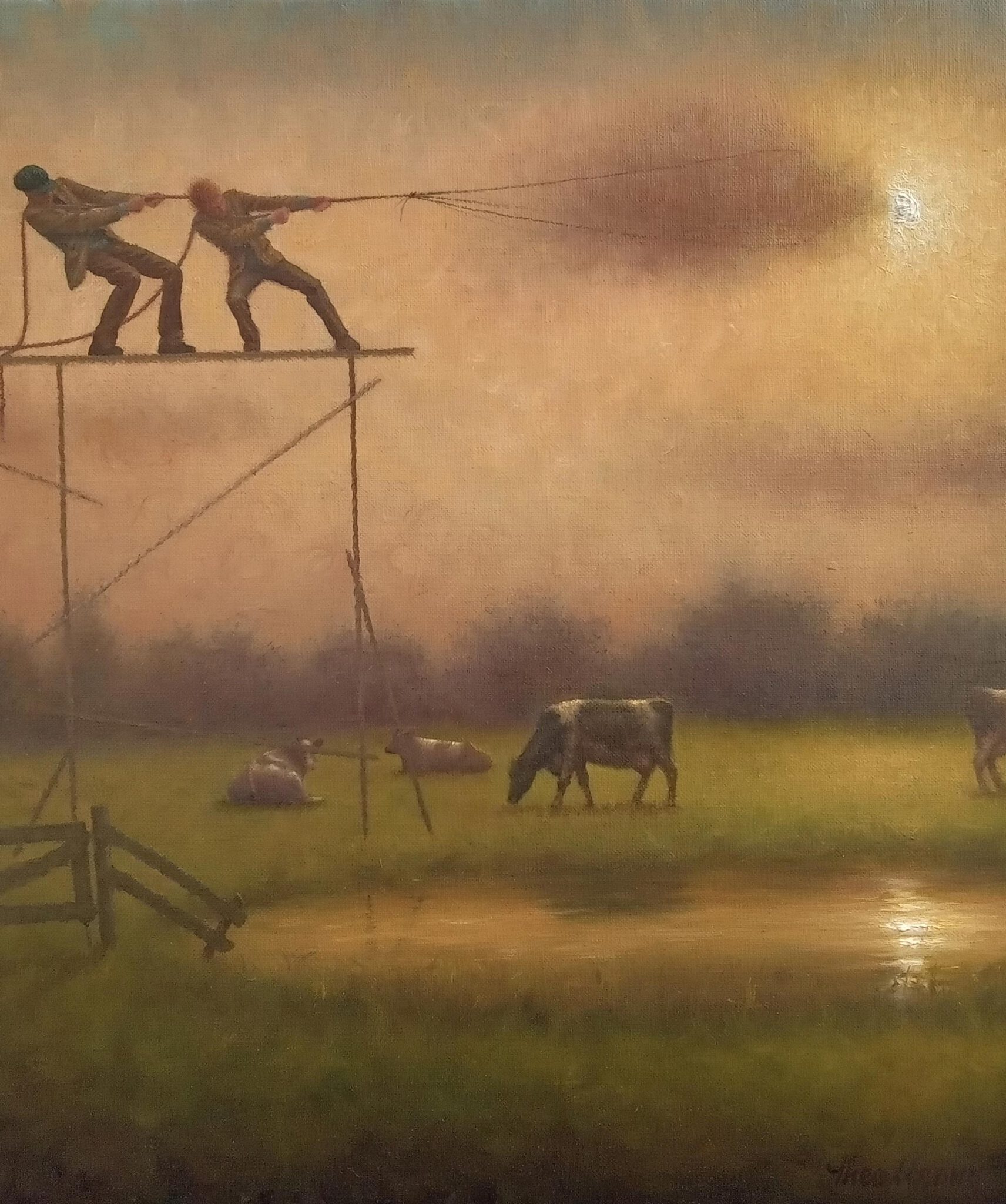 Na het voltooien van een grafische opleiding en jarenlange zelfstudie is Theo Leering sinds enige tijd full time werkzaam als beeldend kunstenaar. Zijn stijl valt moeilijk in één hokje te plaatsen maar is altijd figuratief. Het beweegt tussen realistisch en absurdistisch en is vaak melancholisch van toon. Achter deze melancholie schuilt te allen tijde een sprankje hoop. De thema’s lopen sterk uiteen al speelt muziek in veel van zijn werk een belangrijke rol. In principe kan alles wat op zijn netvlies verschijnt, hoe klein of ogenschijnlijk nutteloos ook, dienen als idee voor een schilderij. In opdracht maakt Theo portretten en muurschilderingen. Daarnaast geeft hij een aantal dagdelen per week les in tekenen en schilderen.