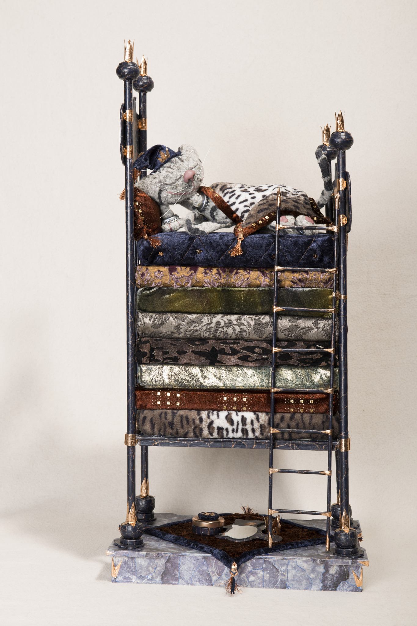 Dit katje slaapt prinsheerlijk op de erwt, met een knipoog naar het sprookje van Hans Christian Andersen.