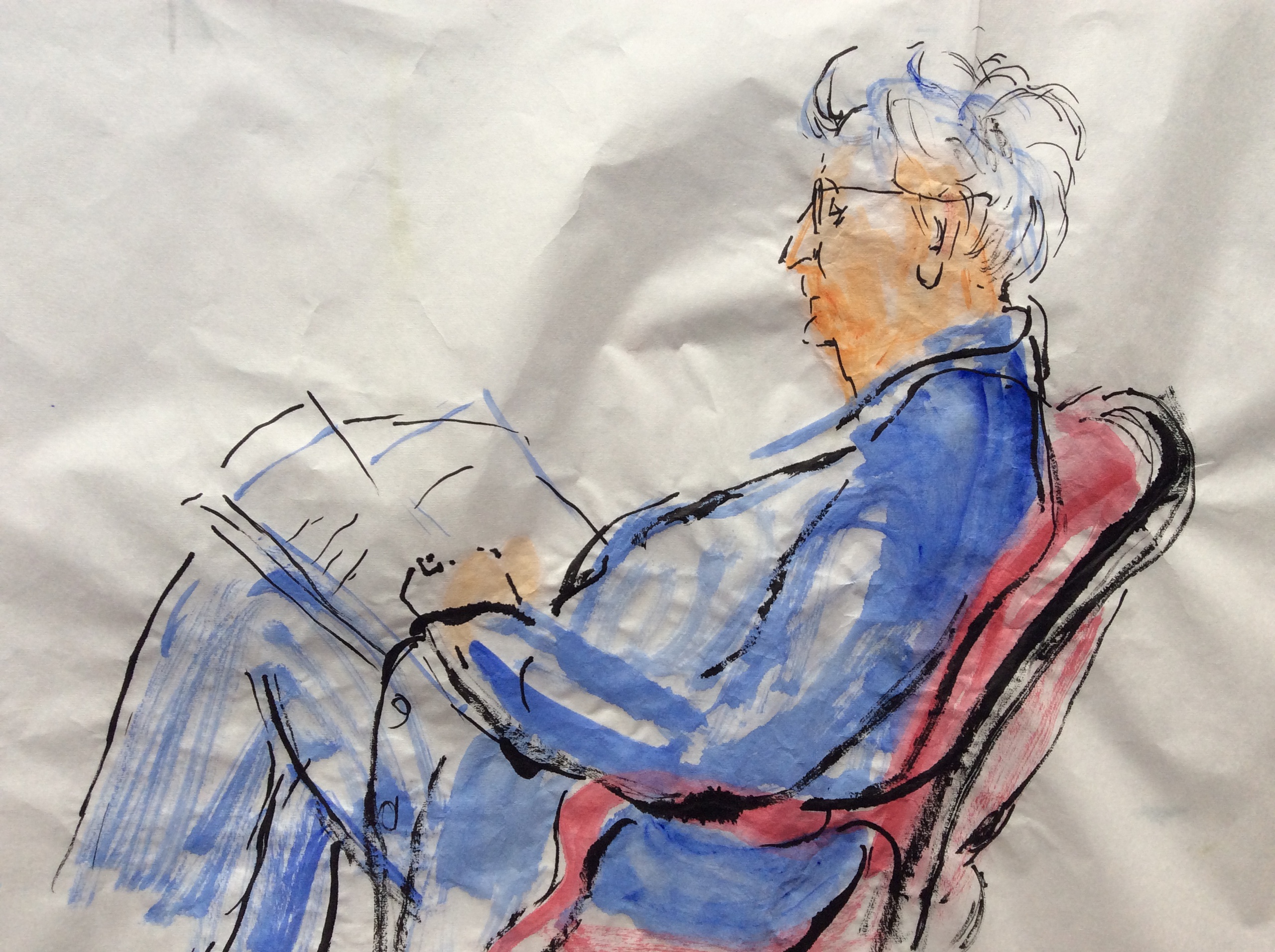 Lezend vrouw aquarel en inkt