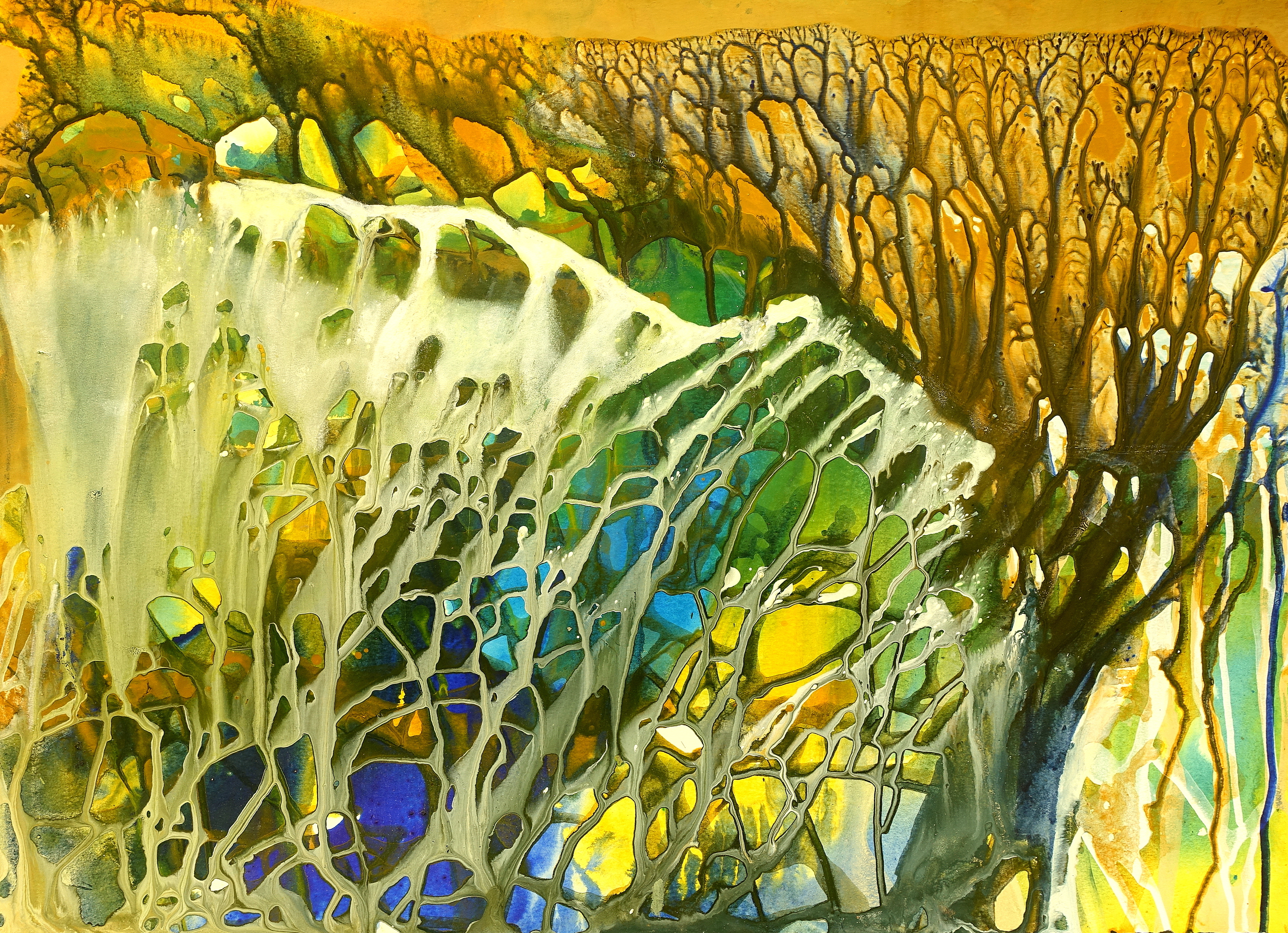 Dit werk is ontstaan door de verdunde acrylverf te gieten.