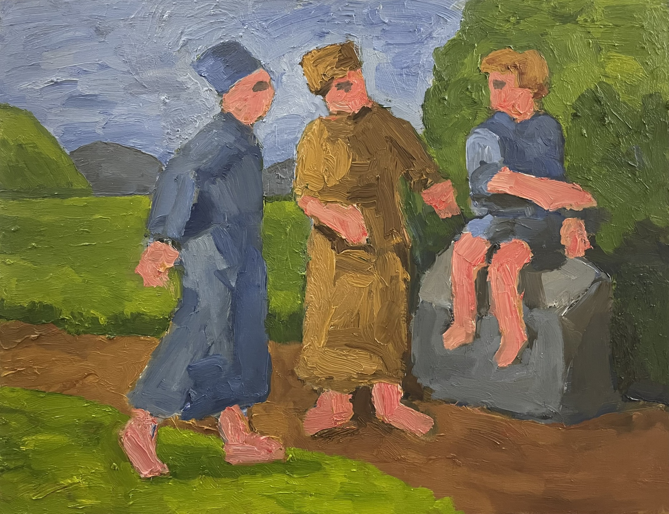 Ik schilder graag mensen in allerlei situaties, binnen of buiten. Een landschap of interieur zonder mensen kan mij ook inspireren.