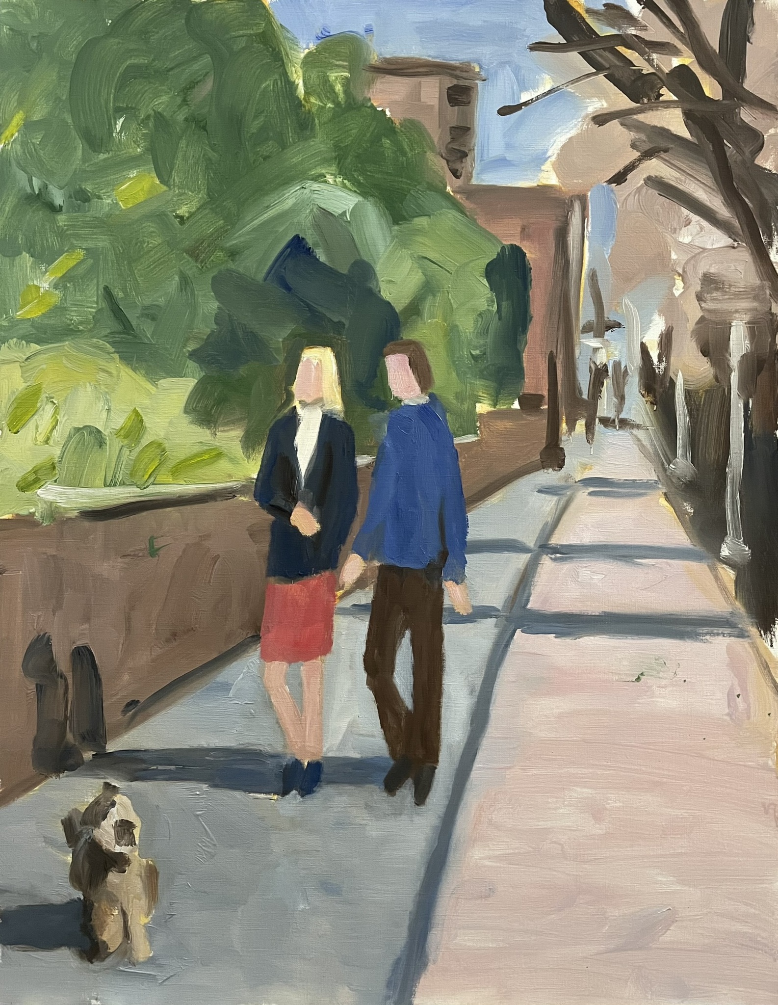 Ik schilder graag mensen in allerlei situaties, binnen of buiten. Een landschap of interieur zonder mensen kan mij ook inspireren.