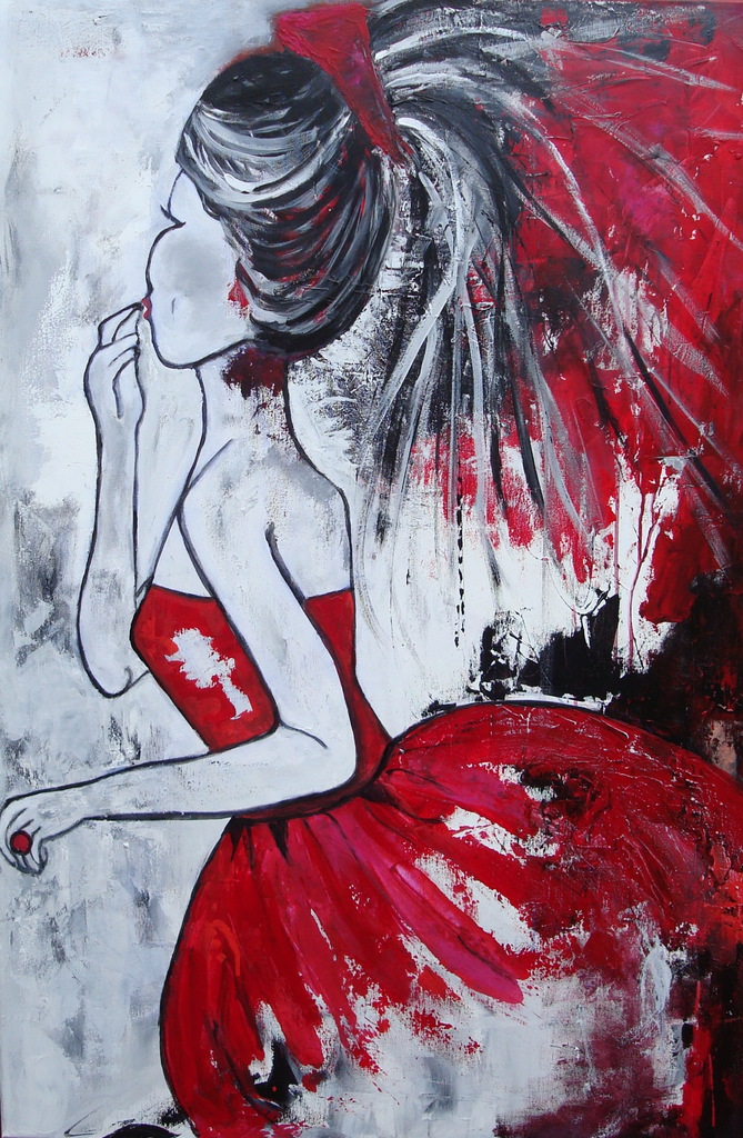 Abstracte schilderijen, met een intens kleurenpalet, waarbij gebruik gemaakt wordt van verschillende materialen en technieken. Vergankelijkheid heeft haar grote passie.