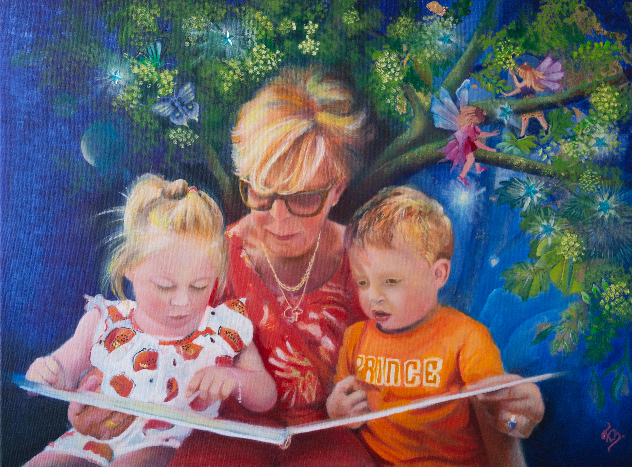 Vrouw Kinderen Oma Verhaal Lezen