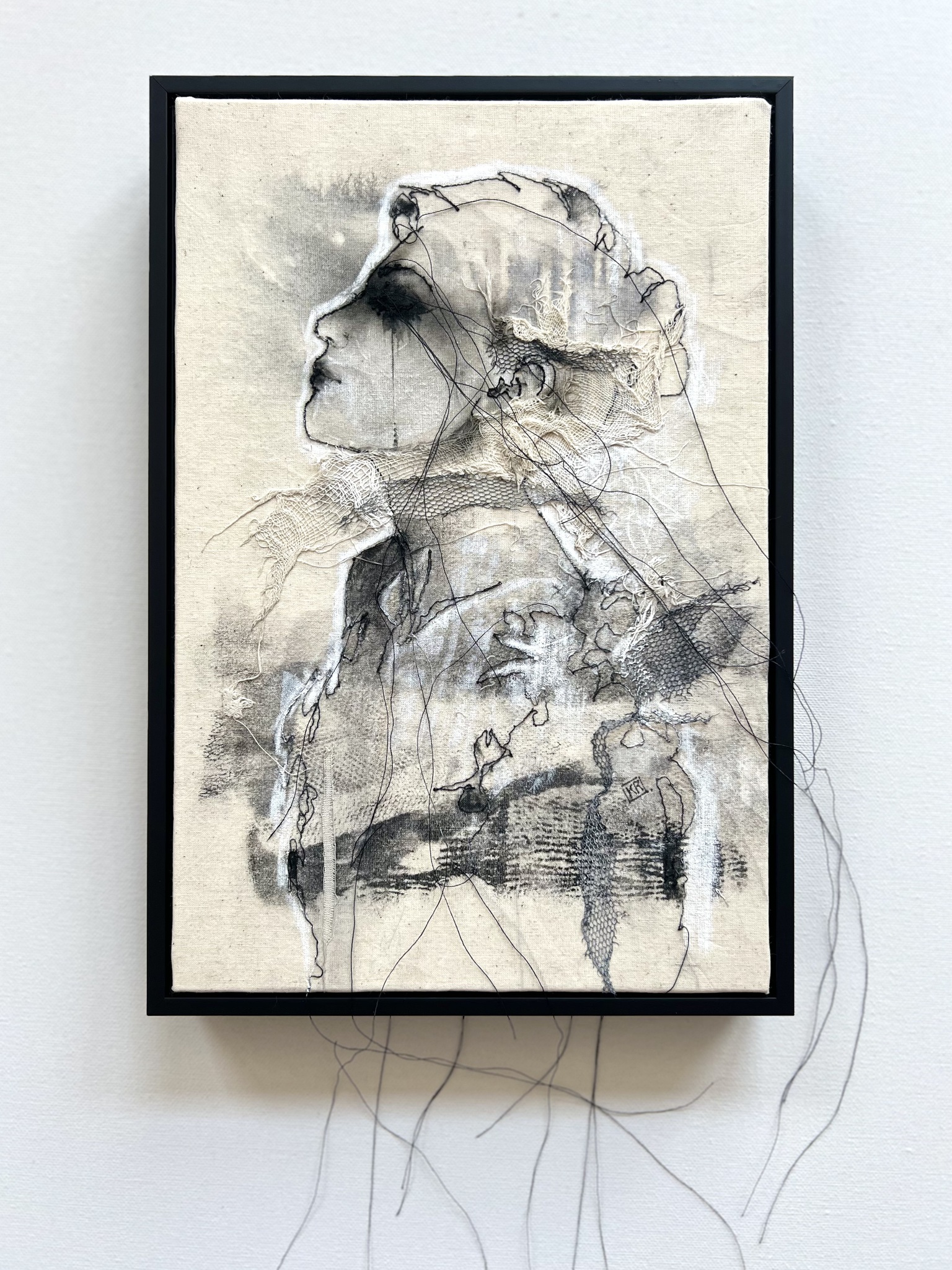 Afgestudeerd Monumentale Vormgeving aan de Academie Beeldende Kunsten Maastricht. (Maastricht Institute of Arts) Vrouwelijke figuren, sensualiteit, kracht en kwetsbaarheid in zwarte draden.