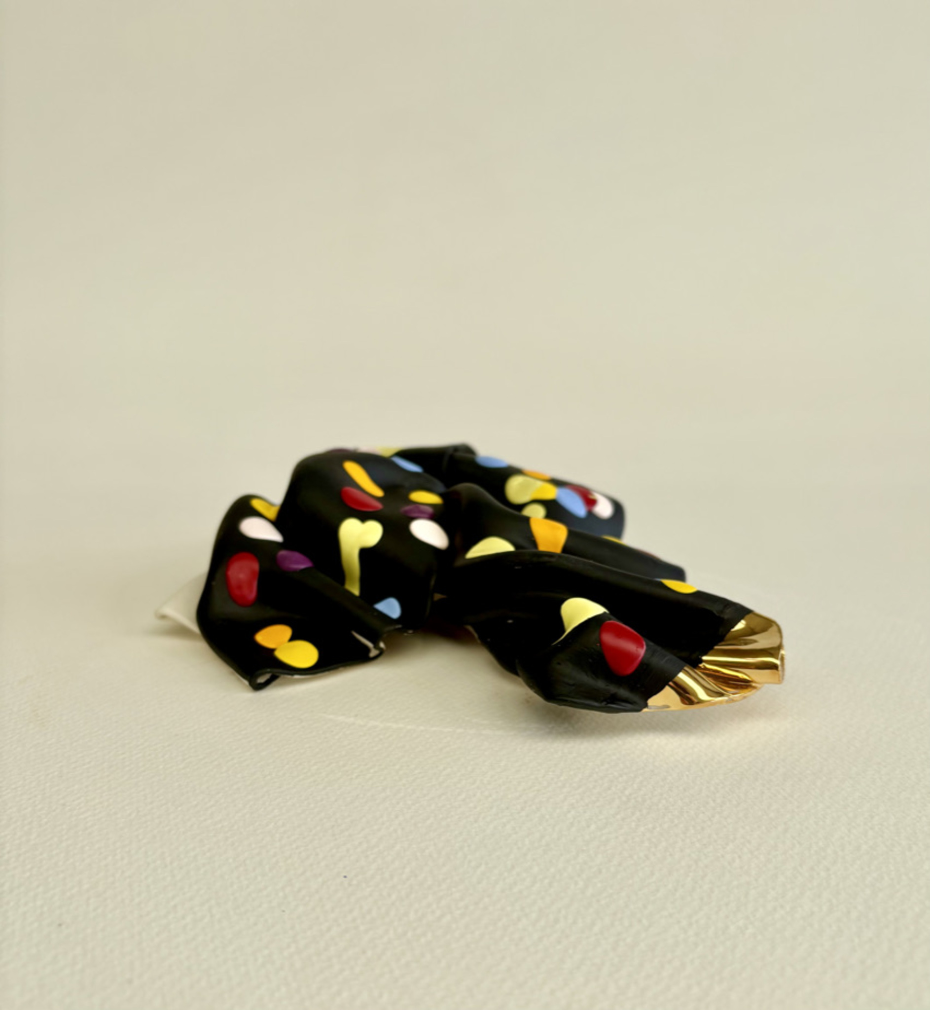 Handgevormd porseleinen beeld van porselein met goudluster. Beschilderd met acryl / 3x gebakken. Aangegeven grootte is fictief. Collectie kunstenaar.