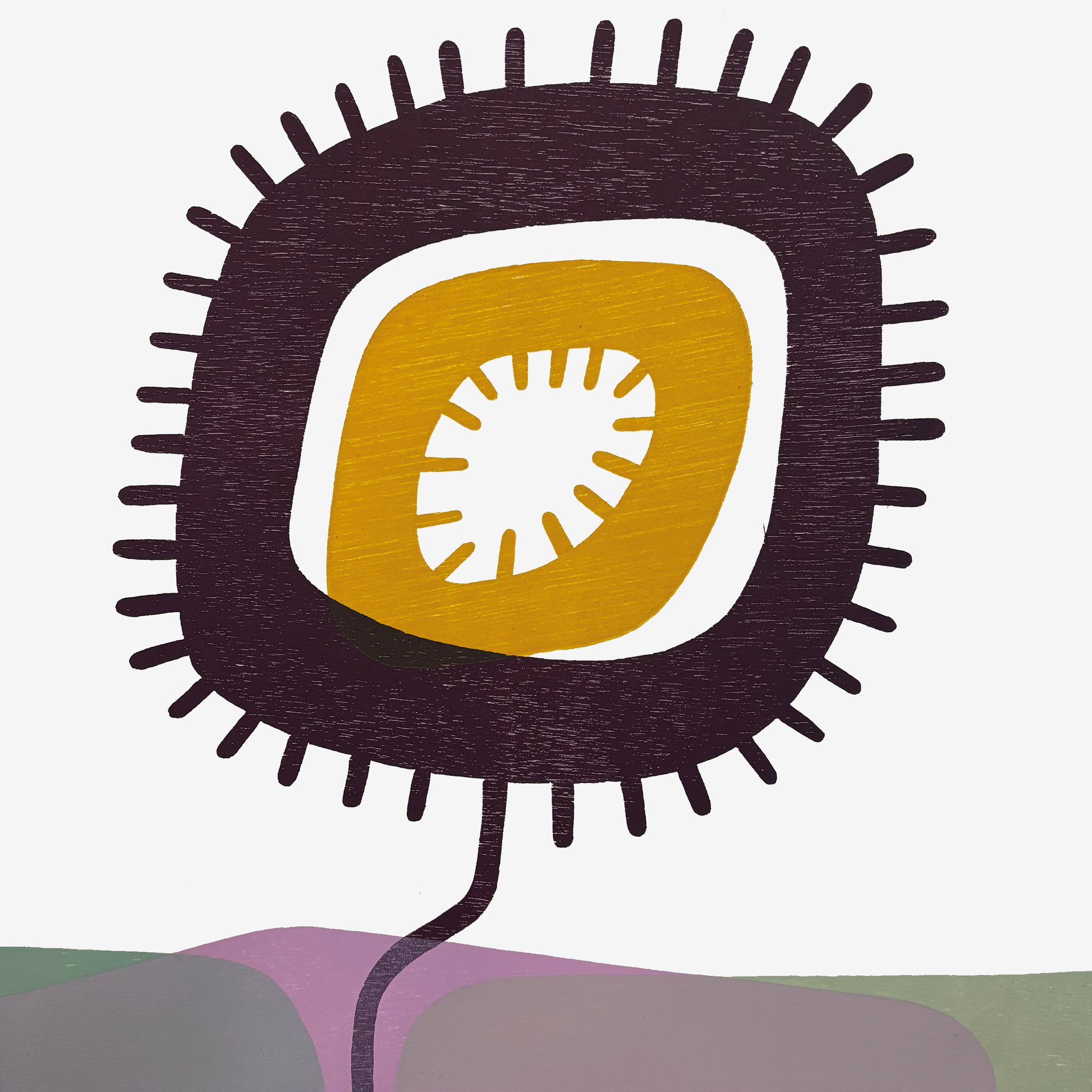Booom! - Houtdruk - sjabloondruk op papier, 5 kleuren, oplage 3.