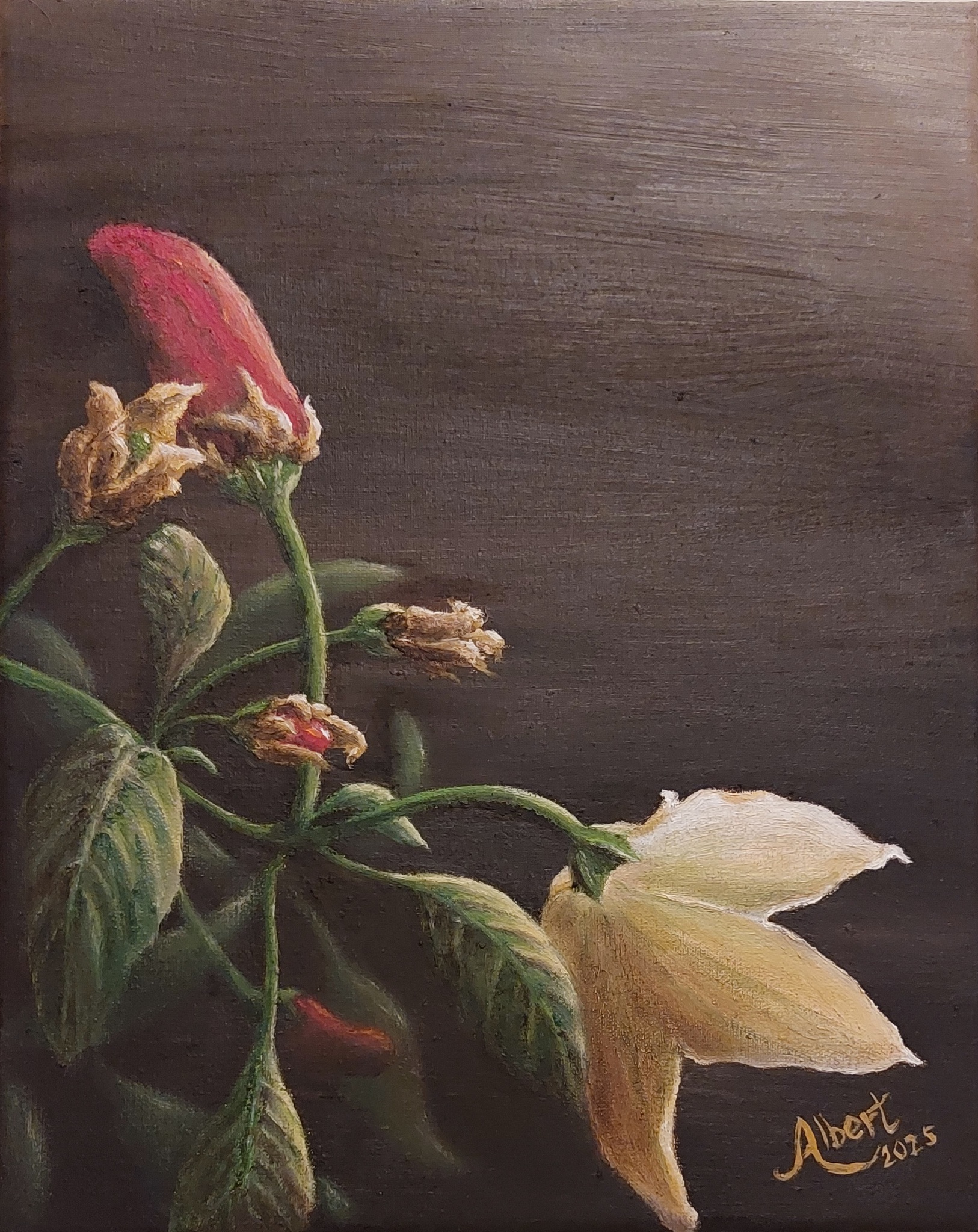 Rode Olieverf Doek Bloem Stilleven Peper