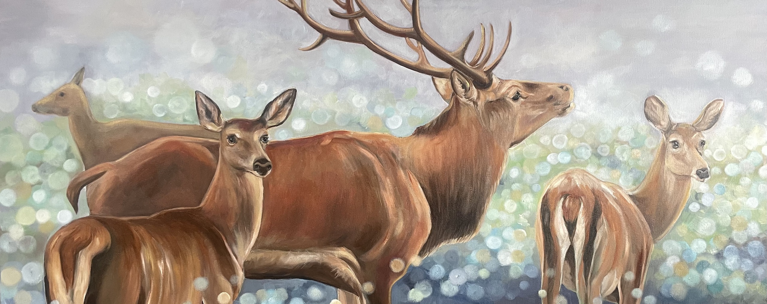 De sprookjesachtige twinkeling geeft voor mij net dat beetje extra aan dit schilderij. Het is de betovering die je voelt als je onverwachts herten in het wild ziet.