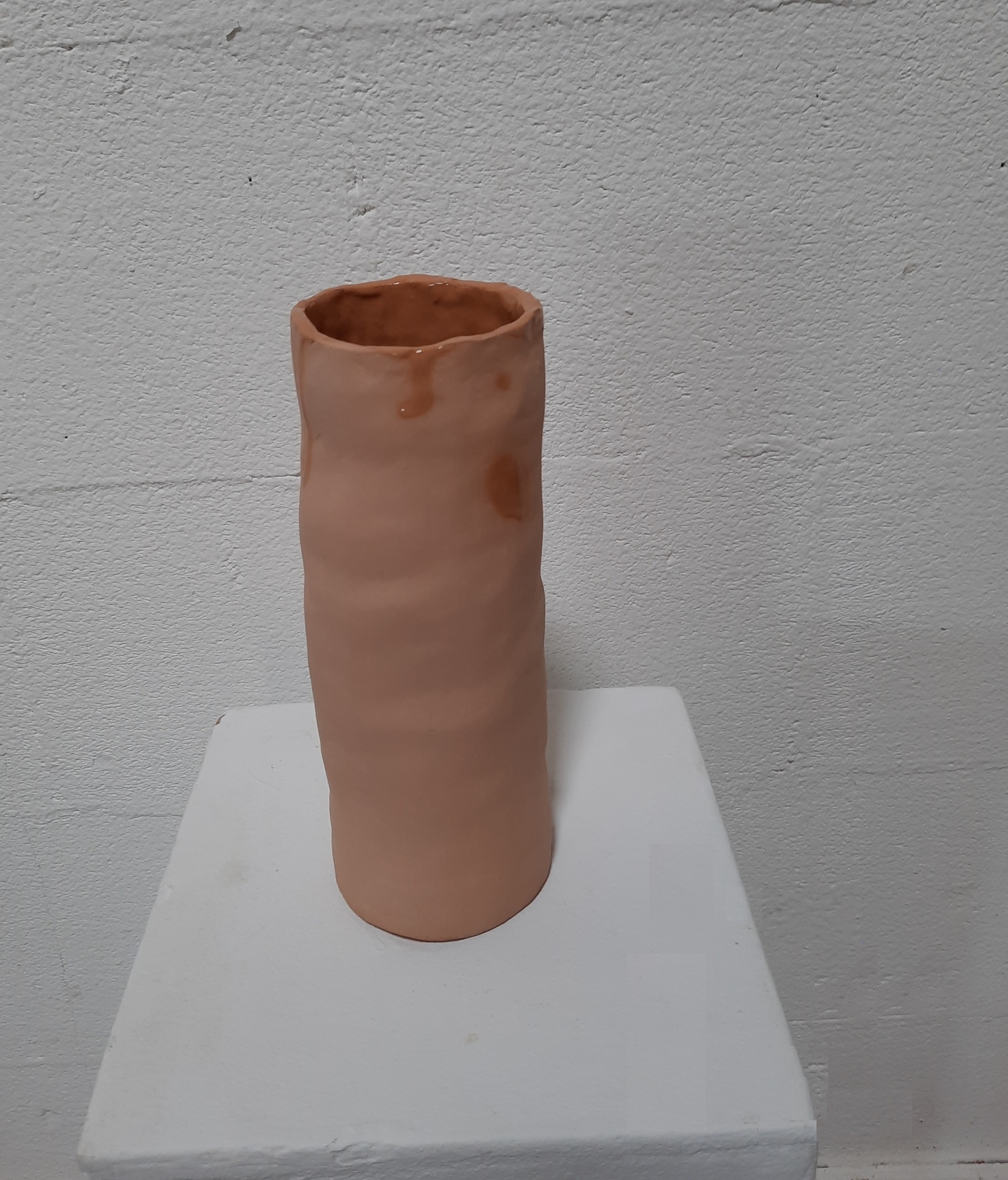 100-Vazen-project – Aardewerk, geglazuurd - proces onderzoek - Alle vazen zijn handgevormd, opgebouwd uit ringen. De vazen zijn cilindervormig en minimaal 30 cm hoog. De vazen lijken elk een eigen karakter te hebben. Hoe verhouden ze zich tot elkaar en tot de ruimte waar ze staan?