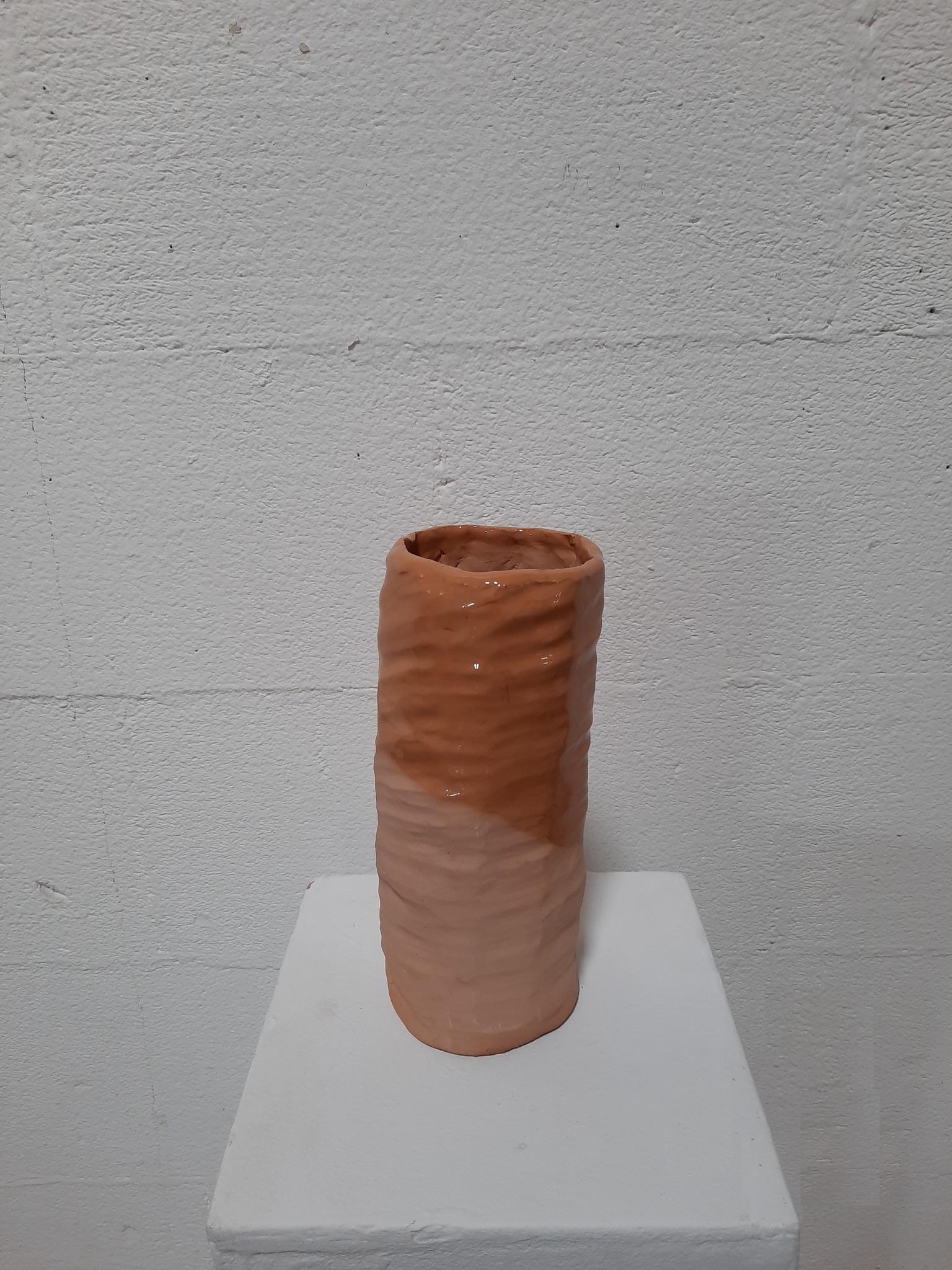 100-Vazen-project – Aardewerk, geglazuurd - proces onderzoek - Alle vazen zijn handgevormd, opgebouwd uit ringen. De vazen zijn cilindervormig en minimaal 30 cm hoog. De vazen lijken elk een eigen karakter te hebben. Hoe verhouden ze zich tot elkaar en tot de ruimte waar ze staan?