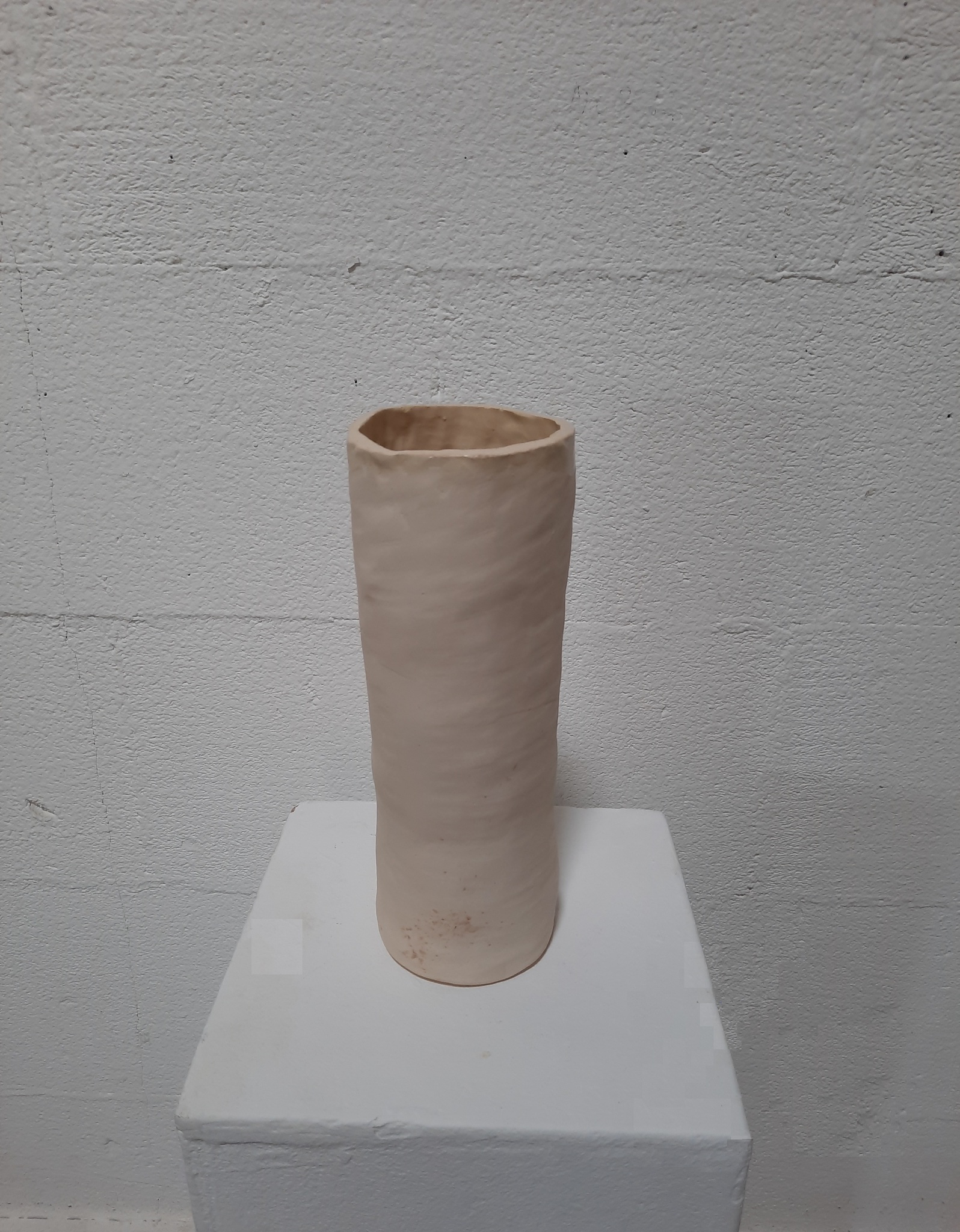 100-Vazen-project – Aardewerk, geglazuurd - proces onderzoek - Alle vazen zijn handgevormd, opgebouwd uit ringen. De vazen zijn cilindervormig en minimaal 30 cm hoog. De vazen lijken elk een eigen karakter te hebben. Hoe verhouden ze zich tot elkaar en tot de ruimte waar ze staan?
