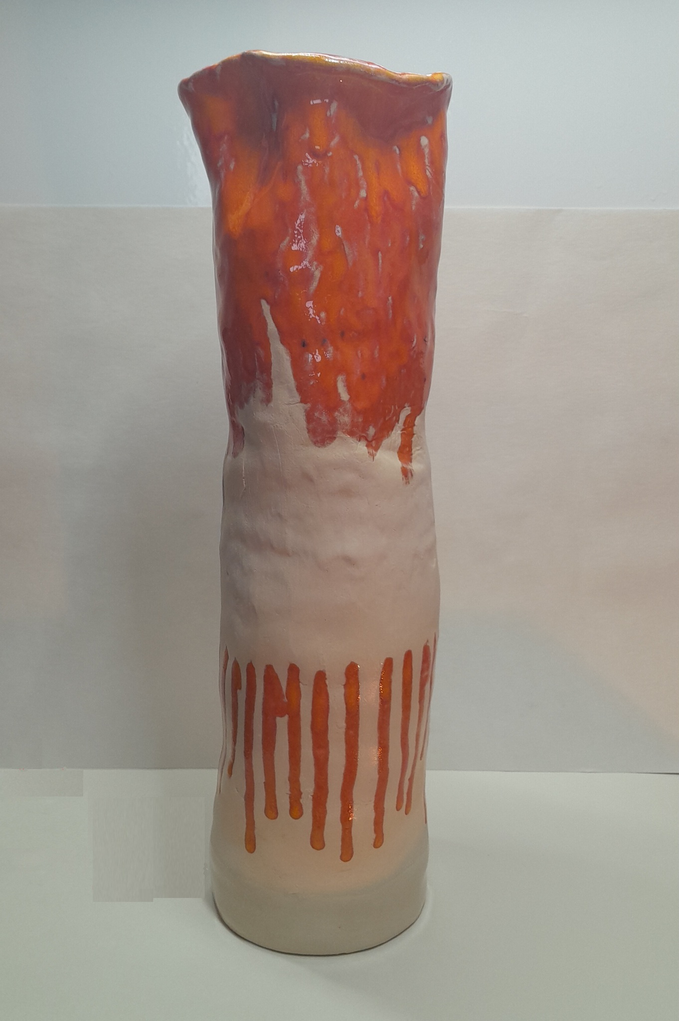 100-Vazen-project – Aardewerk, geglazuurd - proces onderzoek - Alle vazen zijn handgevormd, opgebouwd uit ringen. De vazen zijn cilindervormig en minimaal 30 cm hoog. De vazen lijken elk een eigen karakter te hebben. Hoe verhouden ze zich tot elkaar en tot de ruimte waar ze staan?