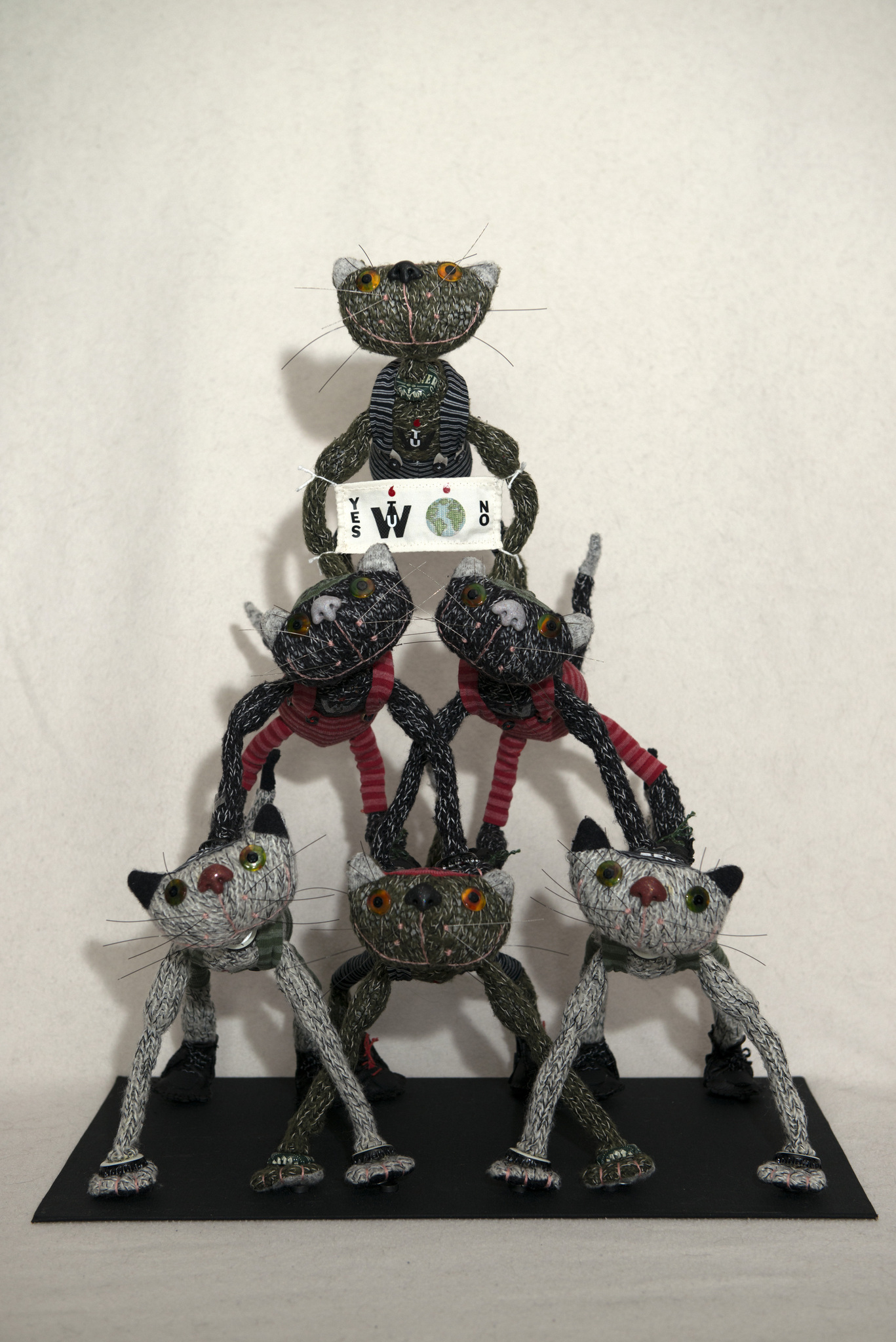 Deze toren van Typecat acrobaten werkt nauw samen om de opwarming van de planeet tegen te gaan Geen gemakkelijke taak, maar het W U T team balanceert als geen ander met kracht, flexibiliteit en uithoudingsvermogen om de aarde koel te houden. Het W U T team is speciaal gemaakt voor de tentoonstelling 'Opwarming'.