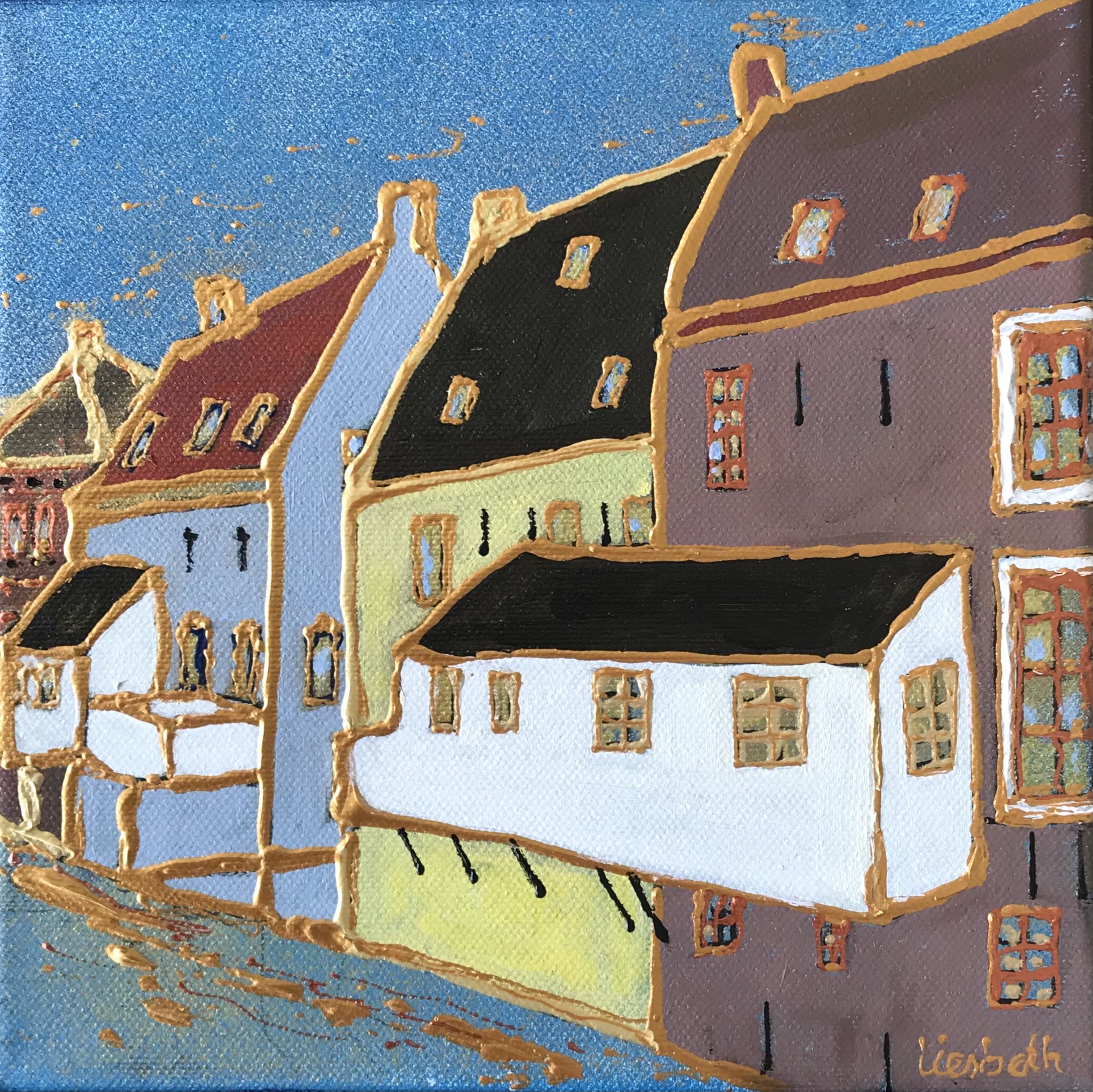 Acryl op doek in houten baklijst.