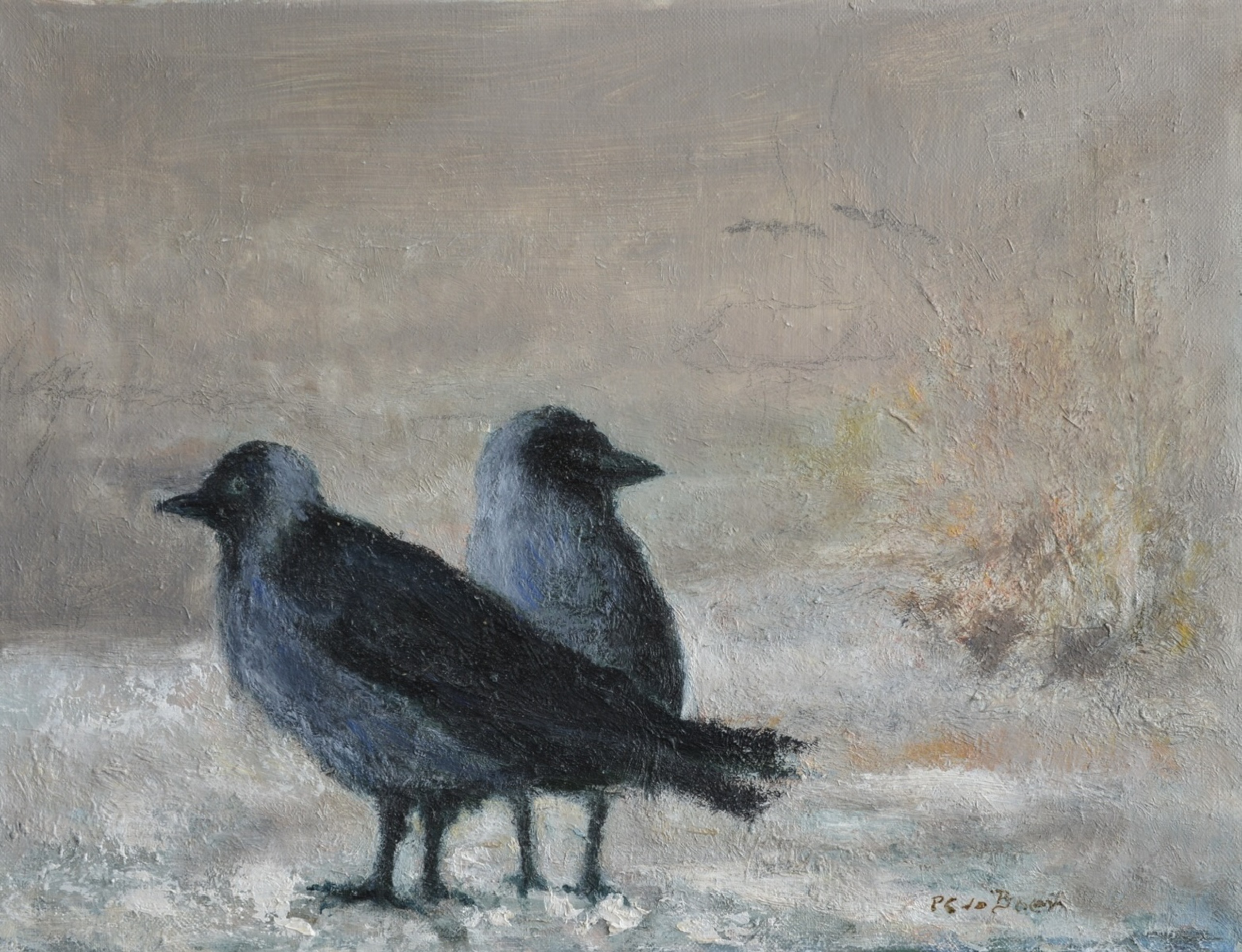 Twee kraaien in de sneeuw