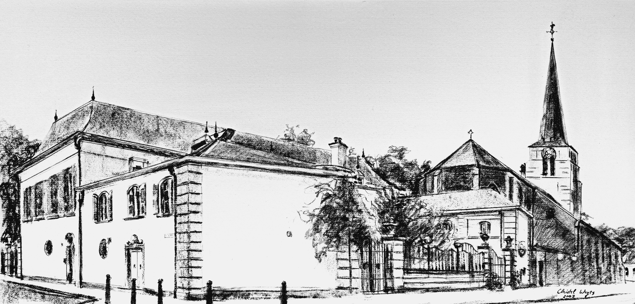 Potlood Tekening Houtskool Architectuur Kasteel Straatzicht Wilrijk Steytelinck