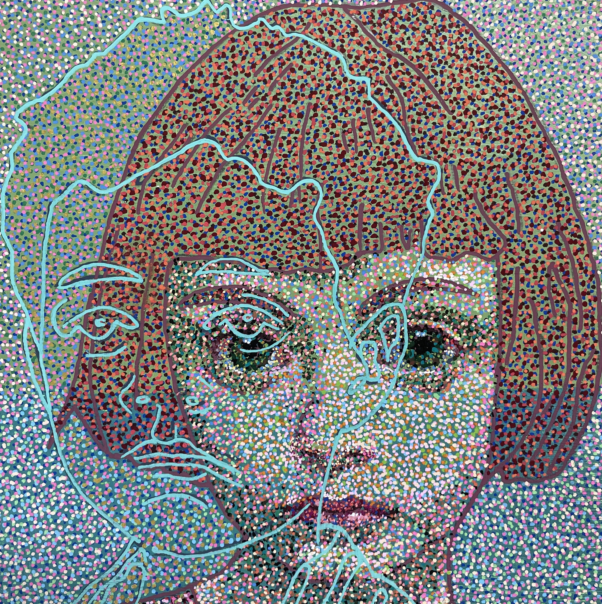 In mijn 'modern pointillistische' werk onderzoek ik of je de ziel kunt ‘vangen’ in een portret. De gelaagdheid van de duizenden stipjes, geeft de gelaagdheid van de binnenwereld weer.