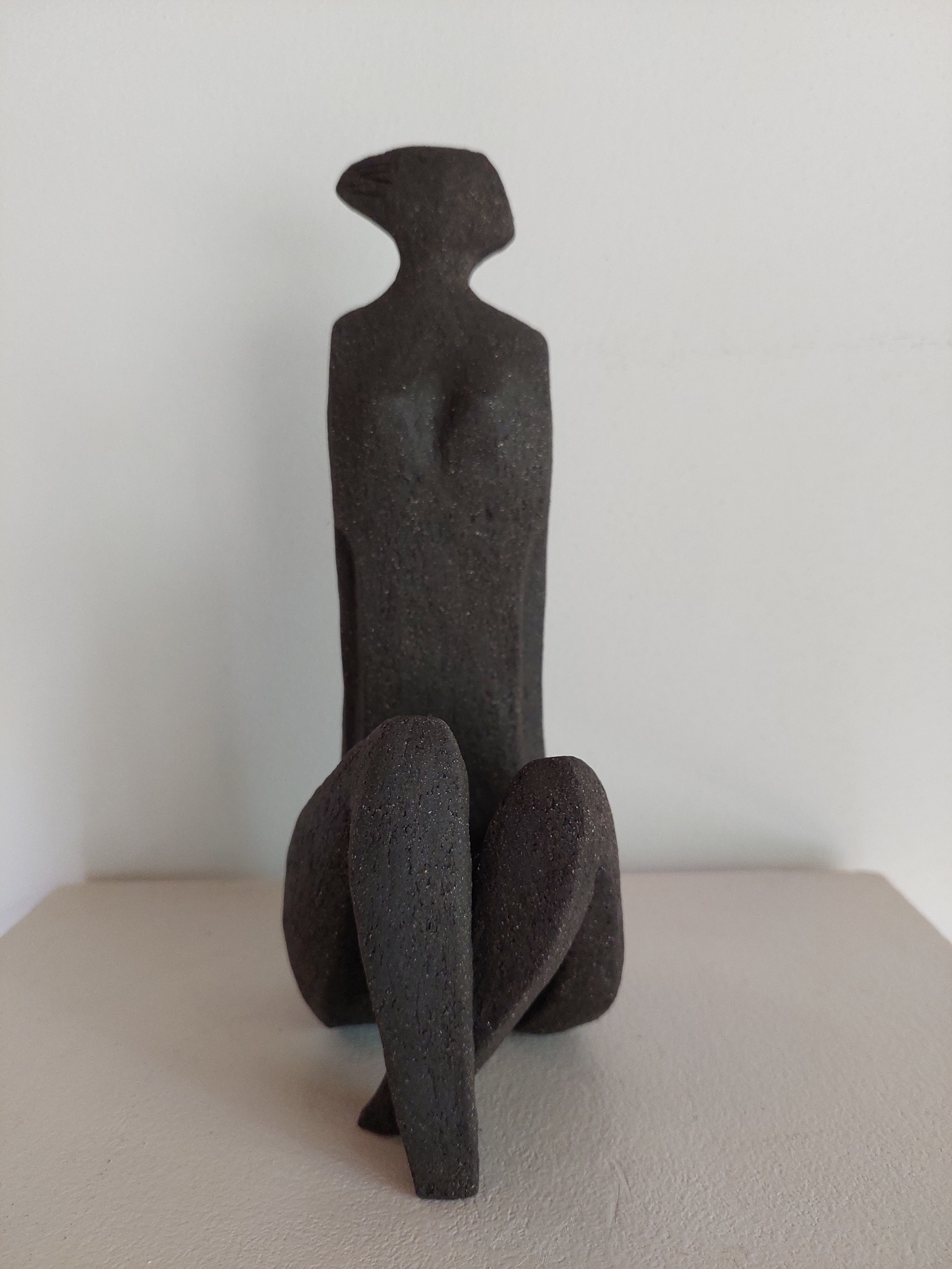 zittend figuur van zwart bakkende klei