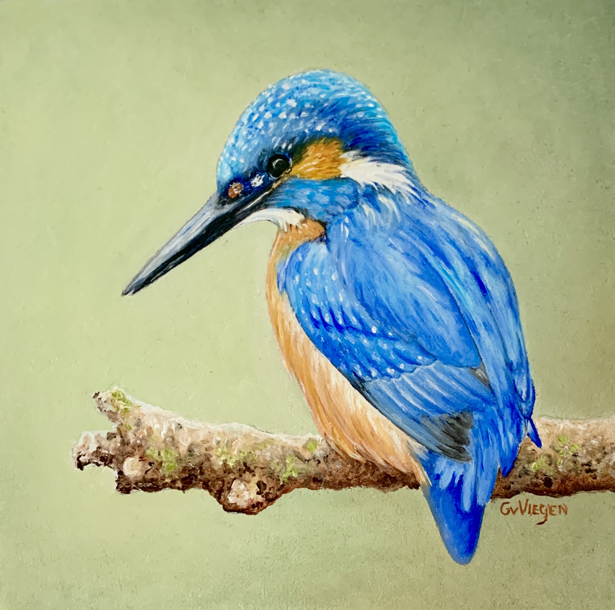 Ijsvogel Natuur Olieverf Paneel Realistisch Blauw Kingfisher Wildlife