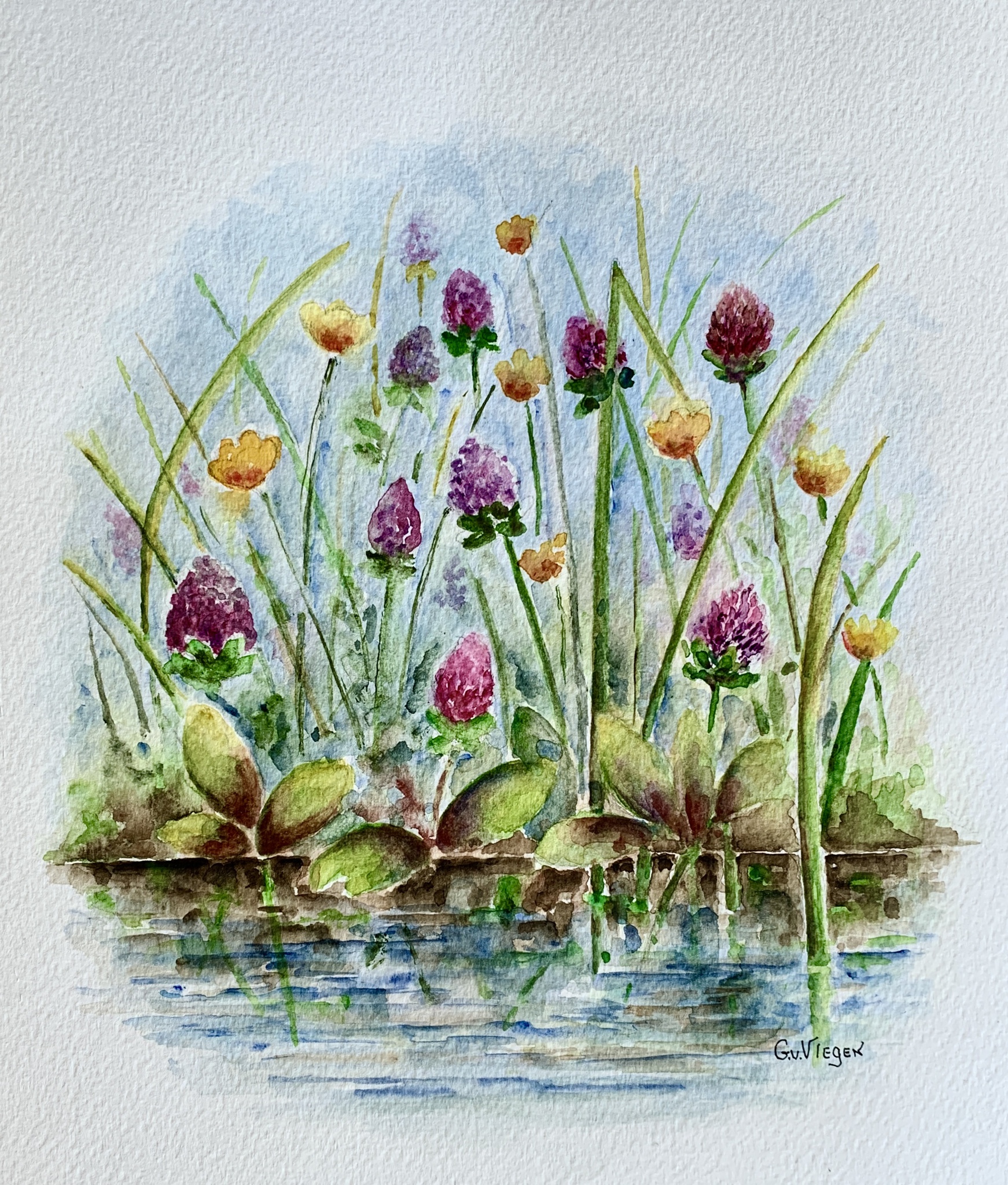 Wildebloemen Bloemen Slootkant Natuur Groen Aquarel Kleurrijk