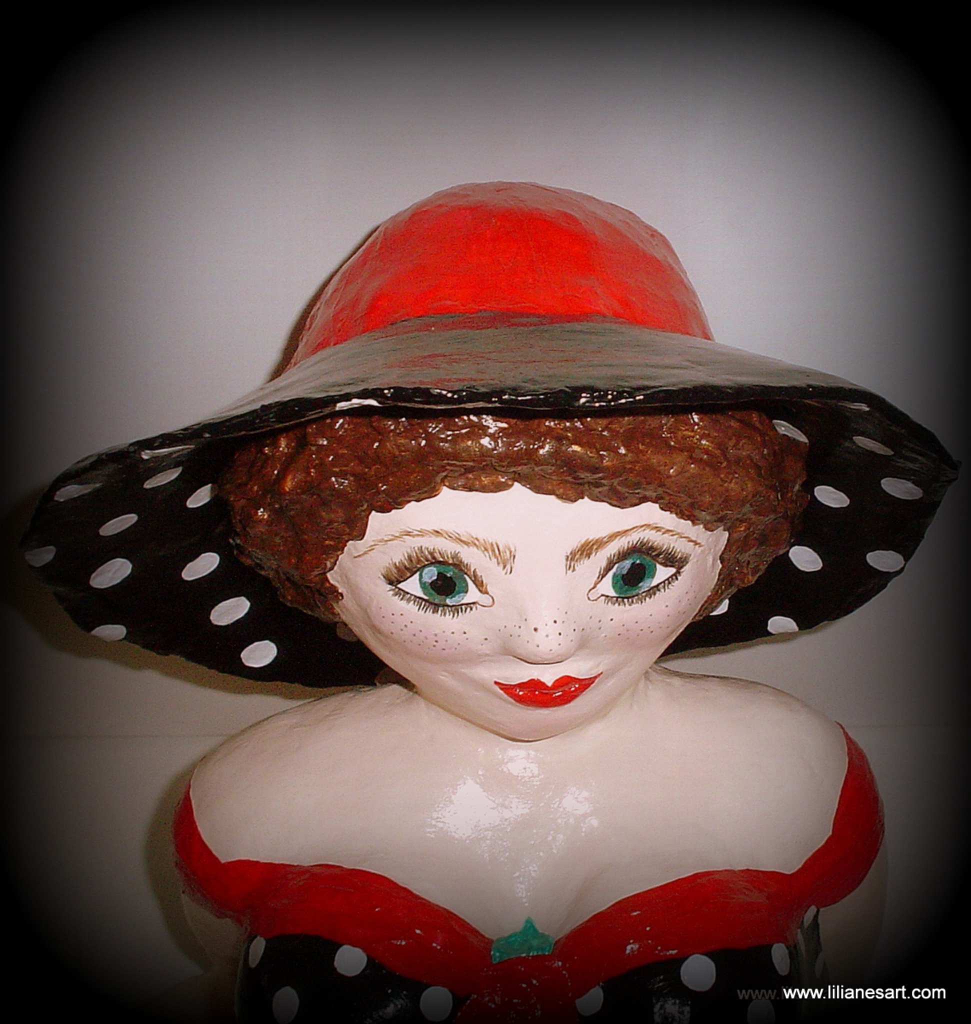 Wit Rood Zwart Art Vakantie Kust Jurk Zonnehoed Eilanden Griekse Recycling Riviera Franse Polka Vrouwenbeeld Massief Papierpulp Dot Papier-maché Amalfi Recyclingart Paperarts Vrouwensculptuur Adorabel