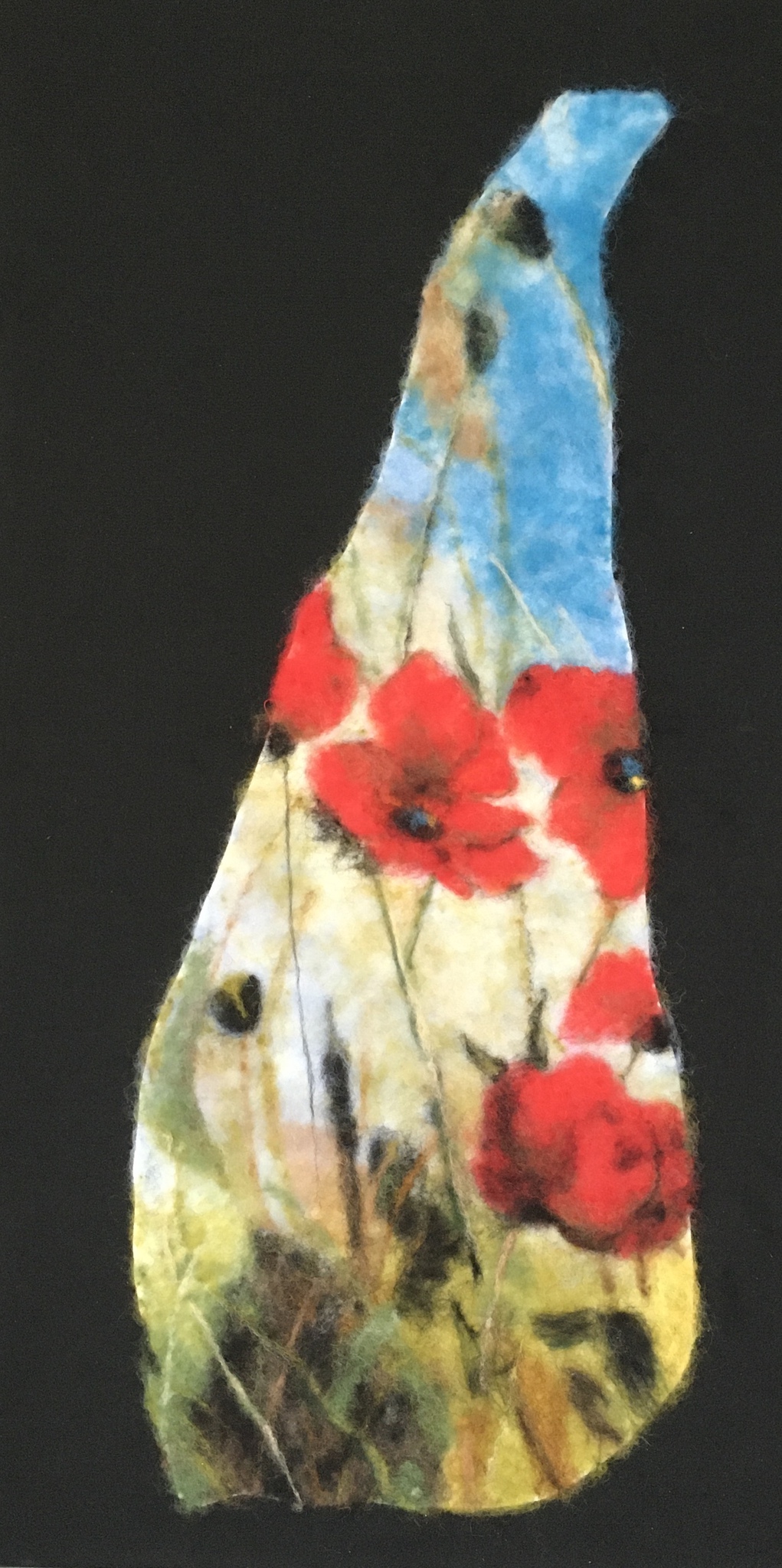 Schilderij Figuratief Bloemen Wol Kleurrijk Textiel Klaprozen Wolschilderen