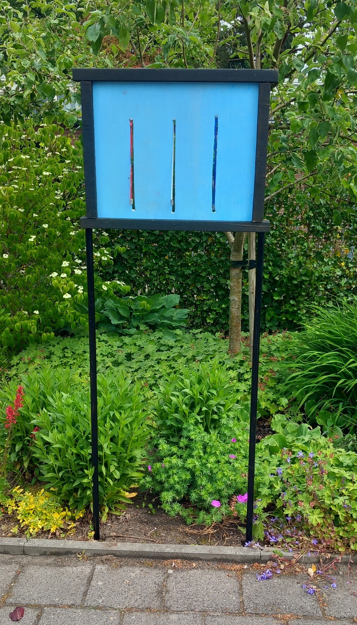 Bewegende objecten welke onderdeel uitmaken van een schilderij dat geplaatst is in de buitenlucht.