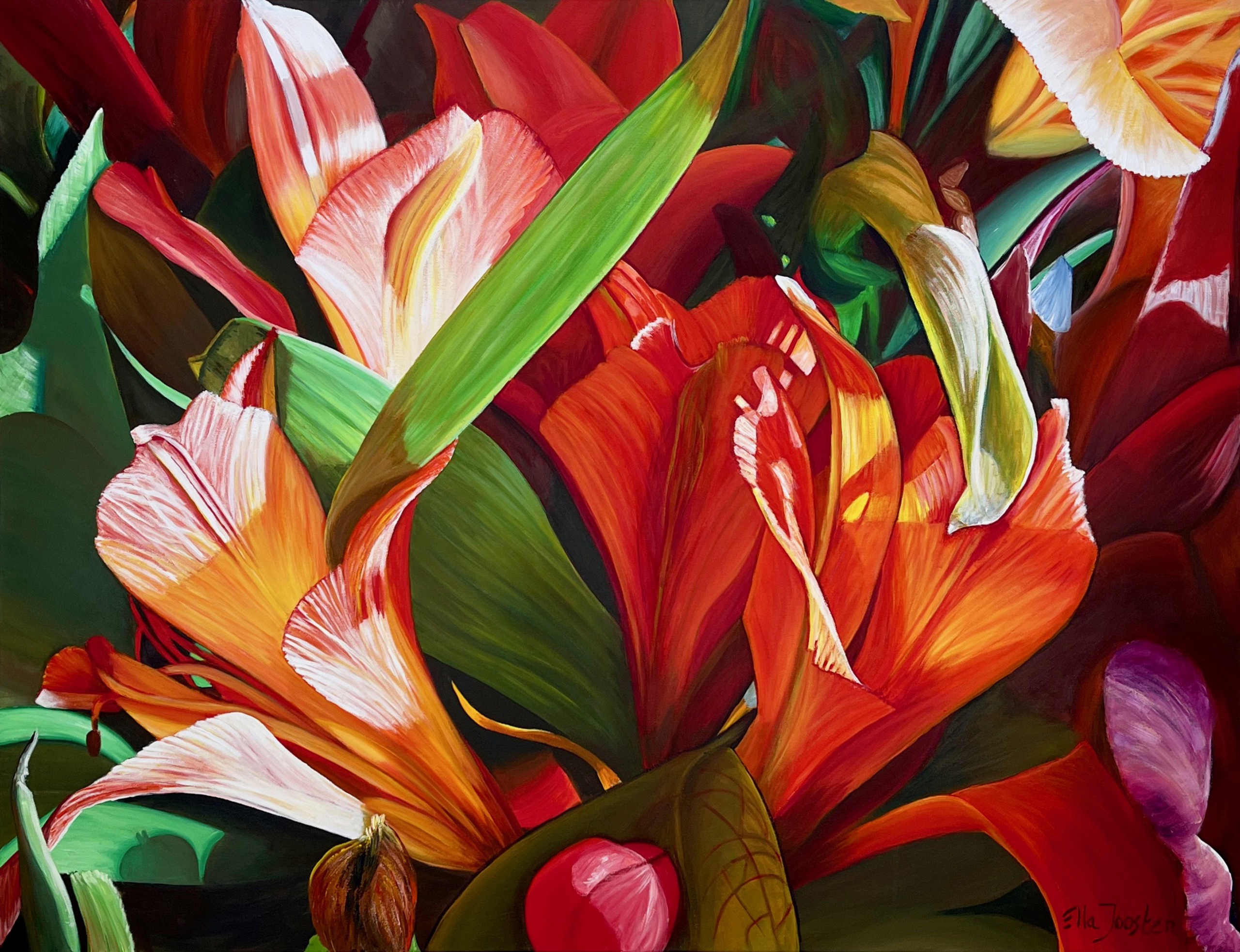 Rood Geel Groen Bloemen Kleurrijk Stilleven Ellajoosten Acryl Schilderij