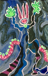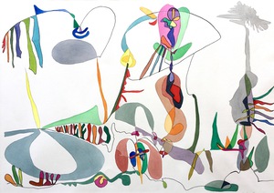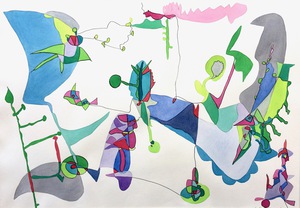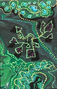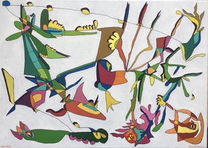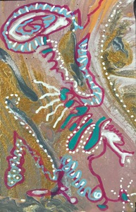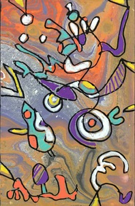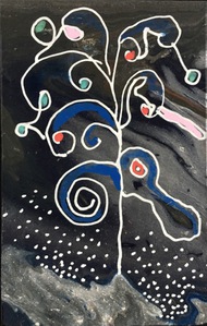 Mijn werk is zeer kleurrijk. Ik balanceer graag op de grens tussen figuratief en abstract, waarbij ik mijn eigen droomwereld creeer. Mijn inspiratie haal ik uit de natuur en het materiaal.