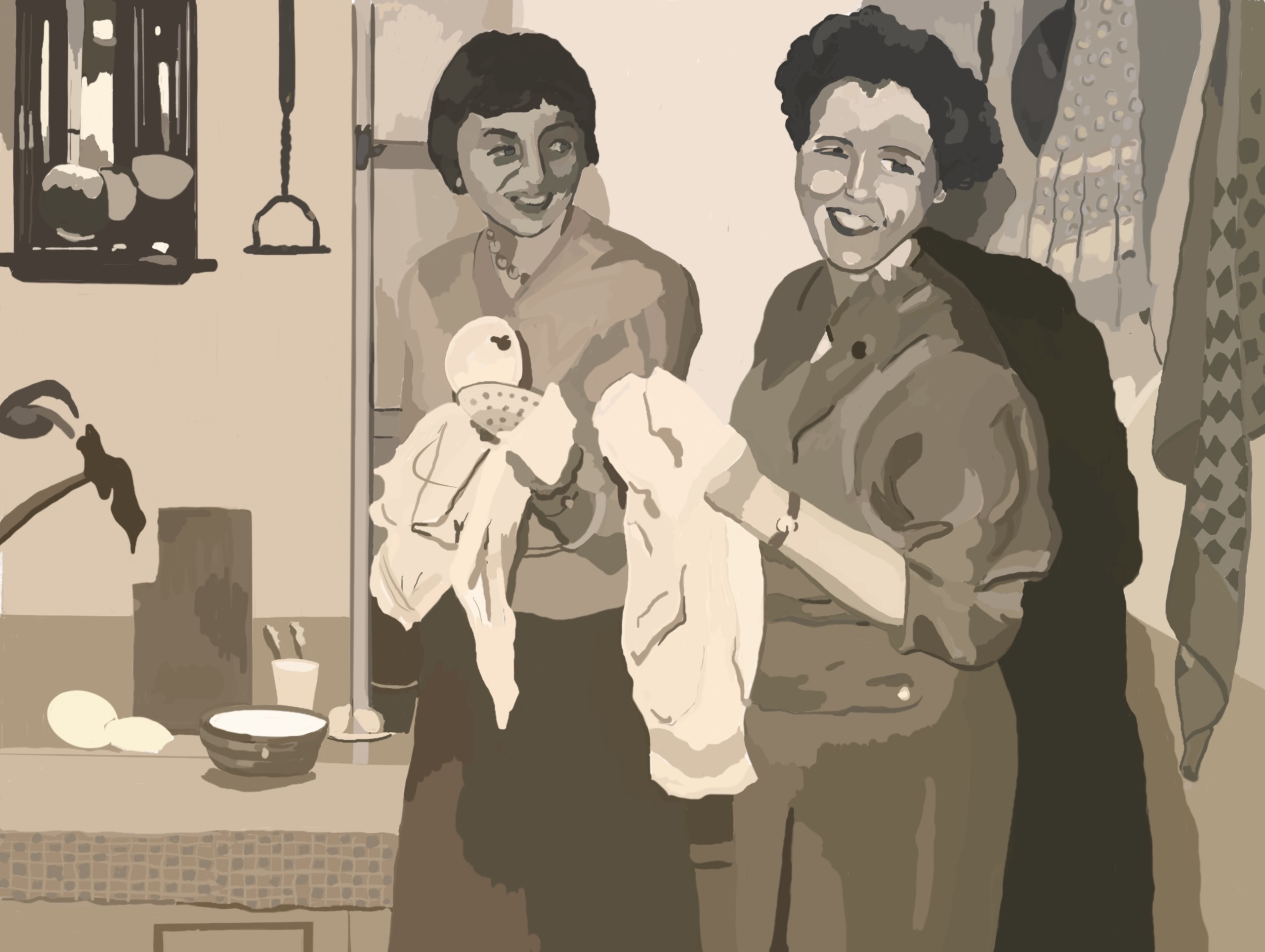Vrouwen Familie Zus Jaren Theedoek Afwassen Sop Zeep Afwas Zeepsop ‘50