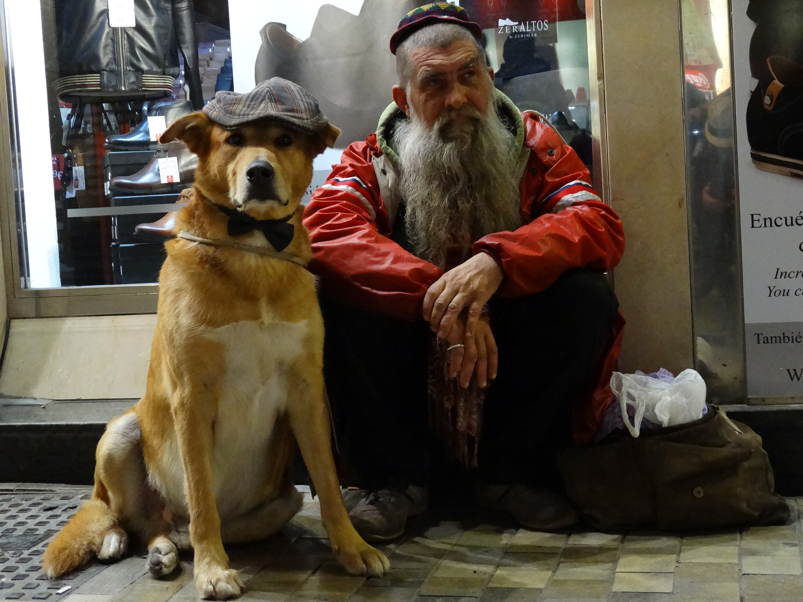 De hond "de minste happer" en zijn baas / volgen je bij elke beweging // De hond is in staat / je vinger in één seconde af te bijten /  tot de minste rest in de tweede. (Malaga, 2016)