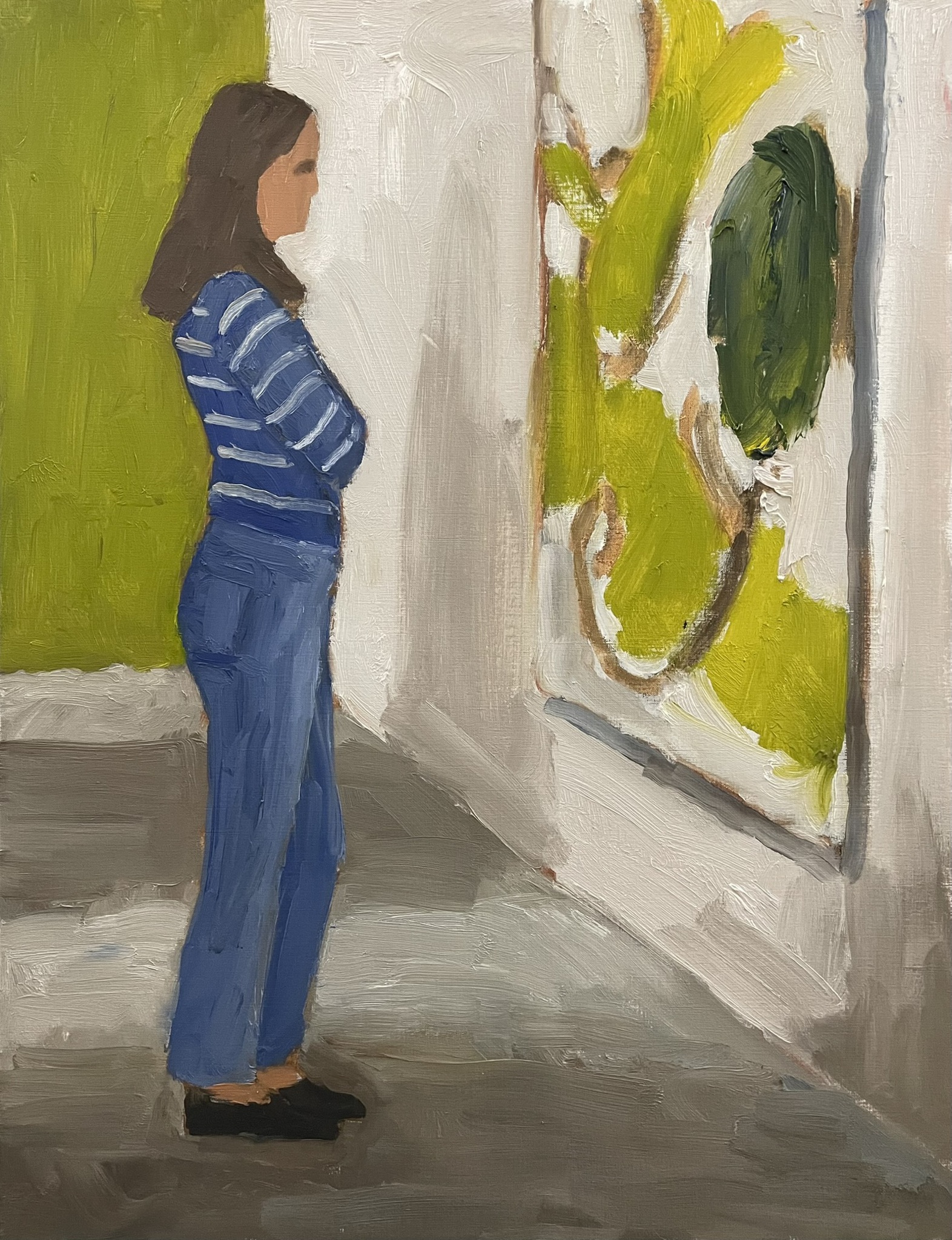 Ik schilder graag mensen in allerlei situaties, binnen of buiten. Een landschap of interieur zonder mensen kan mij ook inspireren.