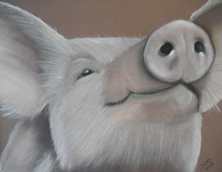 Dit vond ik zo'n lief en ondeugend varkendje, die moest op het doek!
