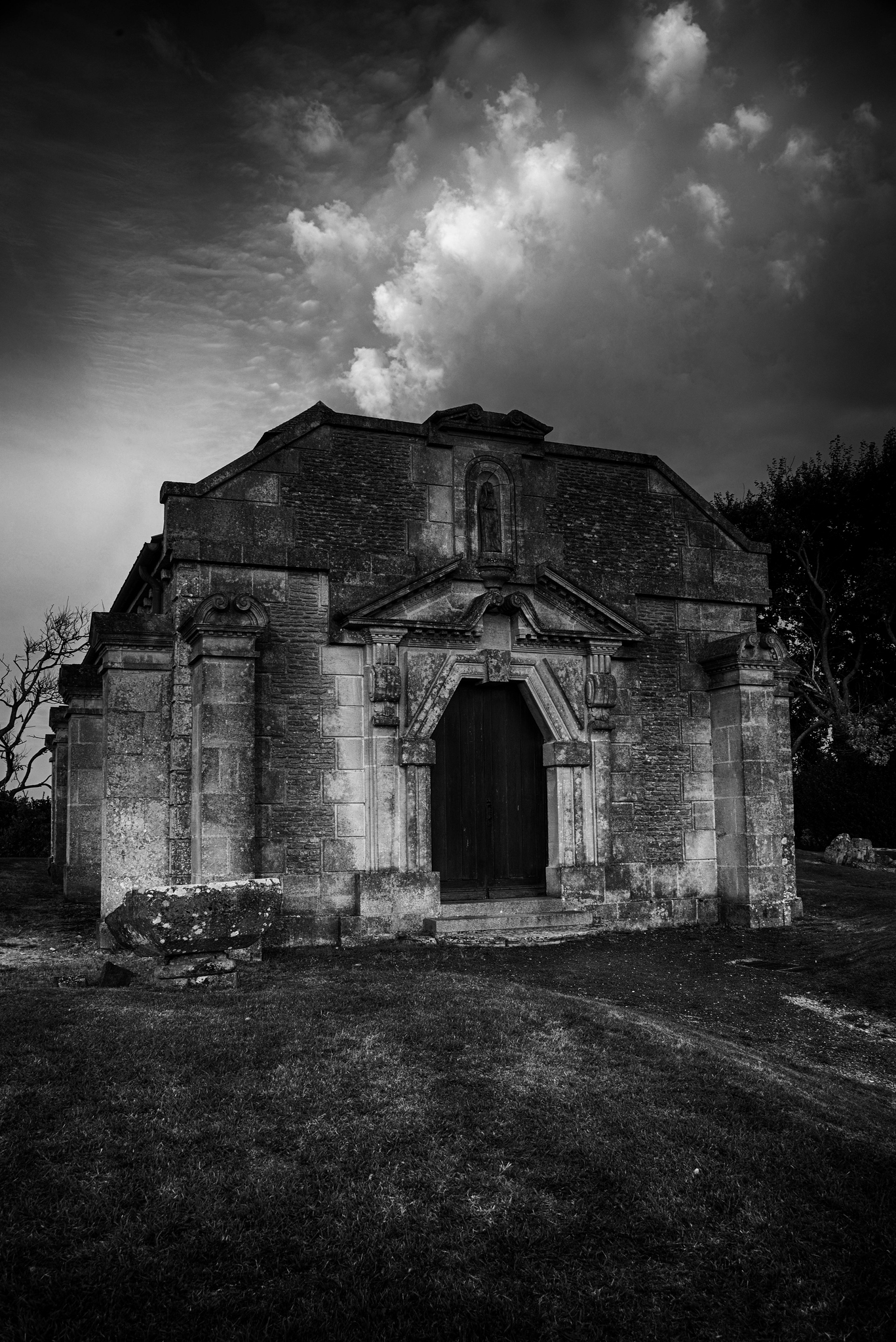Spookachtig, kerkje in Normandie. Foto wordt in beperkte oplage (max. 10 genummerde afdrukken) verkocht. Ander formaat is ook mogelijk