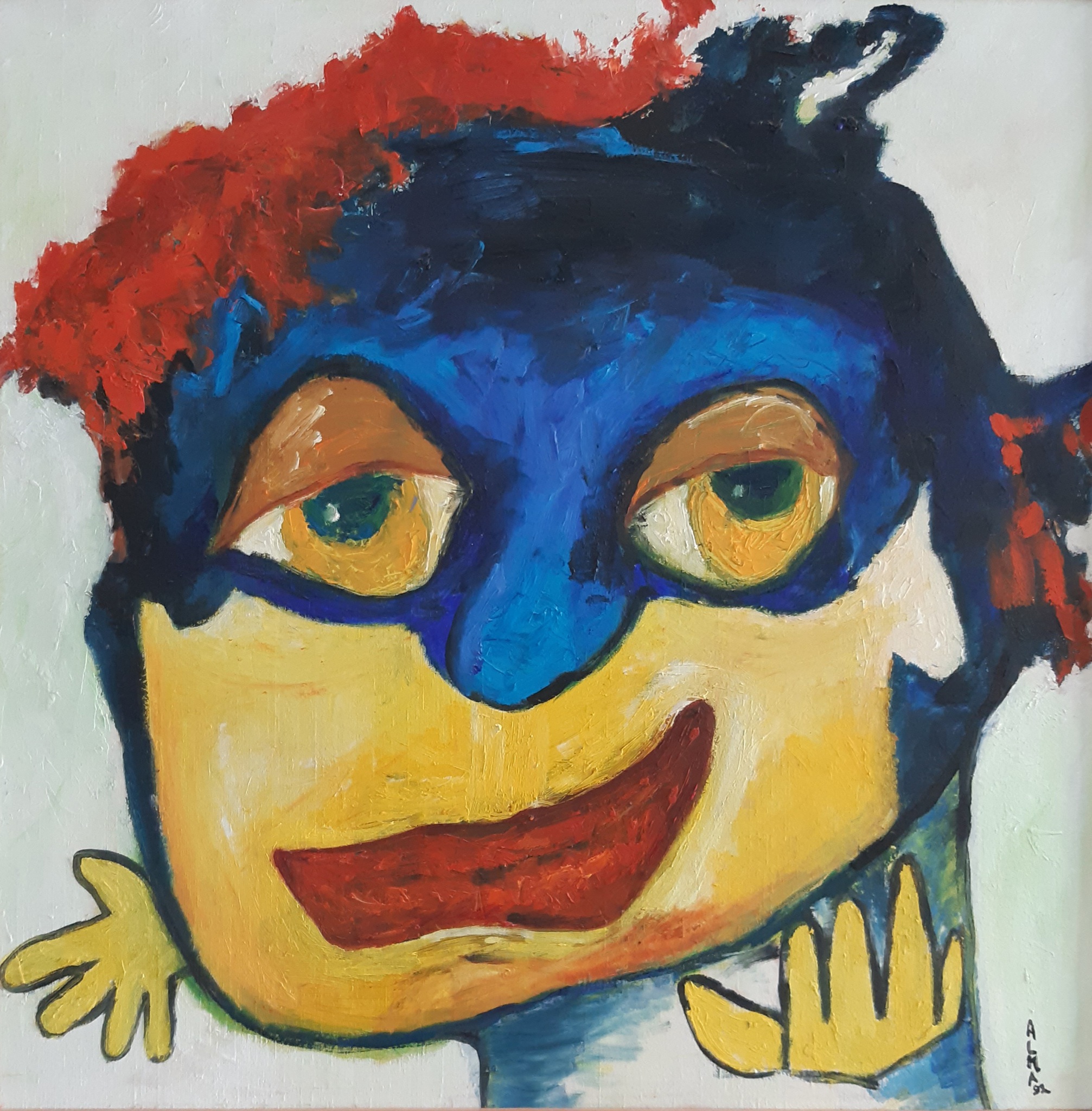 'Glaasje Op' was weer eens wat anders. Geschilderd in 1992. Blijkt achteraf wonderwel te passen in de serie à la Karel Appel, die ik net (2025) geschilderd heb. Inclusief lijst