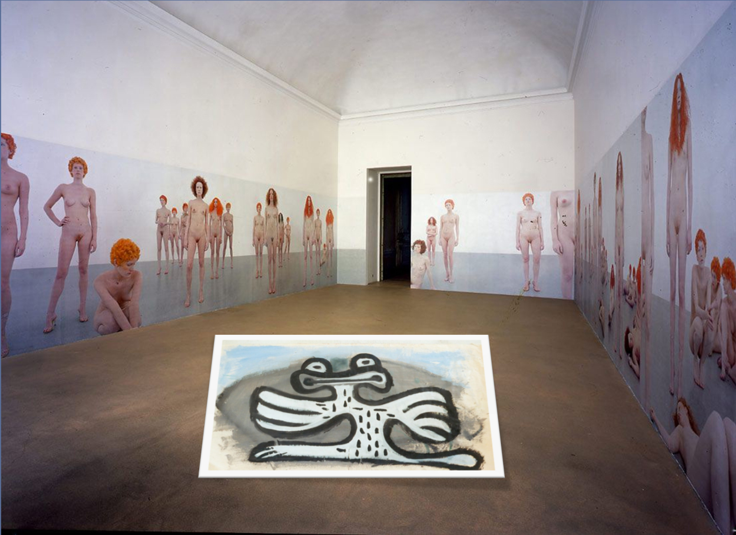 expo (Vanessa Beecroft) impression with drawing (title:splits by m.pompe)