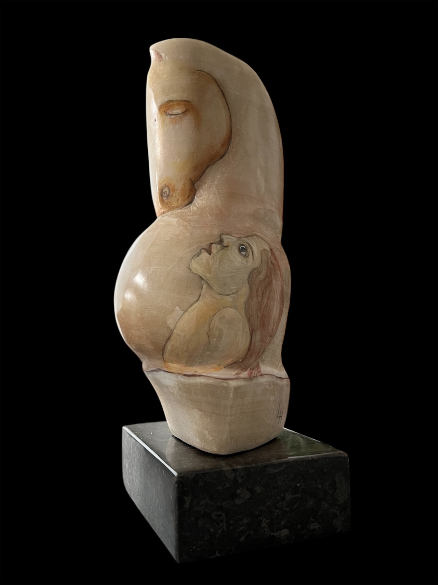Onyx, deels beschilderd - sokkel hardsteen 15 x 11 x 5 cm